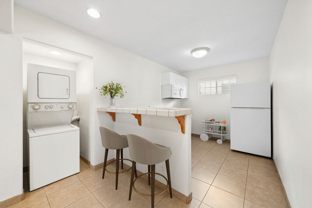 Perfectly situated near everything 17th Street has to offer, this charming studio apartment blends comfort and convenience in the heart of Eastside Costa Mesa. The home features hardwood and tile flooring, recessed lighting, and a spacious walk-in closet for ample storage. The large bathroom includes a walk-in shower, while the separate kitchen and dining area is equipped with a refrigerator and a high-top counter off the kitchen — perfect for enjoying your morning coffee. Additional highlights include a stackable washer and dryer, a private patio for outdoor relaxation, and paid utilities for added ease. This is generally an animal-restricted property; however, we comply with Fair Housing regulations. Seeking a long-term tenant – lease length of 12 months. Tim Carr Group Rentals CalDre#01968681
