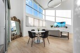 Best 2 bed, 2 bath residence in the boutique Ilona Lofts, in the heart of South of Fifth - the most coveted neighborhood in Miami Beach. SW top corner exposure. Dramatic double height ceilings with floor to ceiling windows in living room, overlooking the trees on quiet Jefferson Ave. Large outdoor space off of the living room, and a private balcony upstairs, off the main bedroom. Recently remodeled with wood floors, custom-made kitchen and bathrooms, custom closets, electric blinds. Washer and dryer in unit. Building features assigned covered and gated parking, elevator, an open air lobby and a rooftop pool and lounge area with sunset views (currently UNDER CONSTRUCTION.) Can be rented furnished or unfurnished. Steps from the Ocean and Miami's best restaurants/ cafes/ gyms.