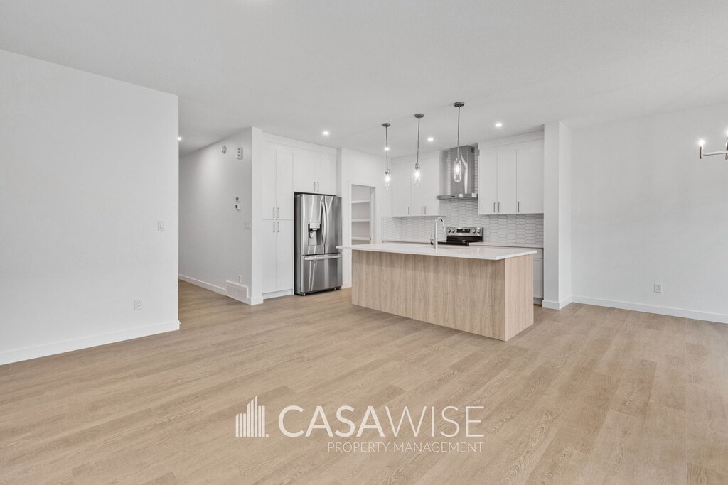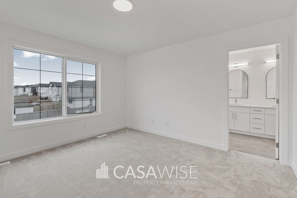 GORGEOUS 5-Bed/3-Bath House With a Double Garage in Secord! Step into a thoughtfully designed home that blends style, space, and functionality—perfect for modern living! • Main floor bedroom offers flexibility for guests, home office, or extended family. • Primary suite includes a luxurious walk-in closet and a private ensuite. • Three generously sized additional bedrooms and a full bathroom with dual sinks on the upper level. • Bright and inviting open-concept living room perfect for entertaining. • Convenient separate laundry room. • Chef-inspired kitchen with a large walk-in pantry and stylish finishes. • Durable and elegant quartz countertops in kitchen and bathrooms. • Unfinished basement – ideal for storage. • Premium finishes throughout: vinyl plank, tile, and plush carpet flooring. • Upscale design details with matte black and rustic gold fixtures for a modern yet warm aesthetic. • Double car garage – perfect for parking and extra storage. Situated in a lively and friendly community, this home offers modern amenities and a warm neighborhood feel. Enjoy easy access to shopping, dining, and top-rated schools—all just 15 minutes from West Edmonton Mall. A perfect balance of comfort and convenience. Utilities, snow removal, and lawn maintenance are tenant's responsibility. No Pets. No Smoking. Professionally managed by Casawise Property Management Only applications received through our site will be processed: If interested, please provide us with your name, phone number, available times for viewings and a little background about you (when do you need the unit for, how many people would be living in the unit, etc.). Thank you! Side note: Seasonal items, including but not limited to landscaping, decks, and fences are not guaranteed. They are subject to the owner and builder approval, as well as weather conditions and contractor availability.