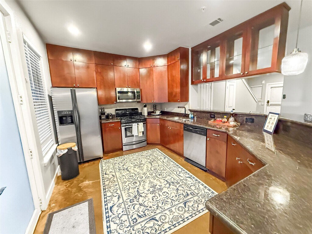 Gorgeous ground-floor corner condo in the popular Rushmore Lofts—city life with a modern twist! Two spacious bedrooms up,each with ensuite baths and stand-up showers. The primary has windows on two walls for all the natural light your plants could dream of. Bonus loft area could be a 3rd bedroom,office,gym,or your “I’ll deal with it later” room. Downstairs features a large kitchen with granite counters,stainless appliances,and stained concrete floors that hide all sins. Open-concept living flows onto two fenced patios which is perfect for coffee,cocktails,or pretending you’re outdoorsy. Refrigerator,washer/dryer included. Two covered parking spots behind a secure gate plus street parking. Walk to Toyota Center,Discovery Green,and Houston’s best hangouts. Easy access to 59,288,and 45. Can be leased furnished or unfurnished. Ideal for a long-term resident or anyone ready to kickstart a short term rental empire. Come experience Midtown/Downtown living at its best! MLS# 44611480