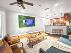 Look no further! You don’t want to miss this Midtown vacation home! Conveniently located in one of Houston’s prime neighborhoods, skip out on all the hassle of traffic jams and live where others come to play! Full of timeless charm and thoughtful touches, this place has all the comforts of home and more! This is a 2-story apartment located on the 3rd floor of the building. Feeling inspired by the southern culinary spirit of Houston? Whether you’re looking to whip up some morning biscuits or simply unpack the take-out, this kitchen is fully equipped for your cooking needs! It includes standard appliances, such as a fridge, freezer, stove, oven, dishwasher, and microwave, along with a kitchen island with seating for 2. The living room features an open-concept layout that makes it easy to socialize with those in the kitchen. It includes a comfortable couch, bean bags, a coffee table, a designer rug, a flat-screen TV, and high-speed Wi-Fi. The bedroom offers a king bed with fluffy pillows and crisp linens, an ensuite bathroom, matching nightstands and bedside lamps, a dedicated sitting area, and a wall-mounted TV. An air mattress is available for an additional guest. Additional amenities include a dedicated parking spot and a washer and dryer available for laundry. Located in the much-desired neighborhood of Midtown, you’ll be only minutes away from some of Houston’s most popular attractions, diverse dining and entertainment options, and a thriving cultural scene. Explore nearby attractions like The Houston Museum of Natural Science, Houston Zoo, and Minute Maid Park, or enjoy the exciting neighborhoods of Midtown, Washington Avenue, and Montrose for great restaurants and lively bars. We do not allow parties or large unauthorized gatherings of any sort on our property. Only registered guests are allowed over while renting the property. Smoking of any type is not allowed and violations are subject to a $450 fine plus the cost to clean, deodorize, and repair damages. Check-in is at 4pm and checkout is at 10am. Pets are not allowed. A noise alert device is installed to monitor reasonable noise levels, ensuring compliance with local noise ordinances and occupancy regulations. Rest assured, this device does not record or store sound data. Small low-key gatherings are allowed only upon request and approval in advance. [SI]