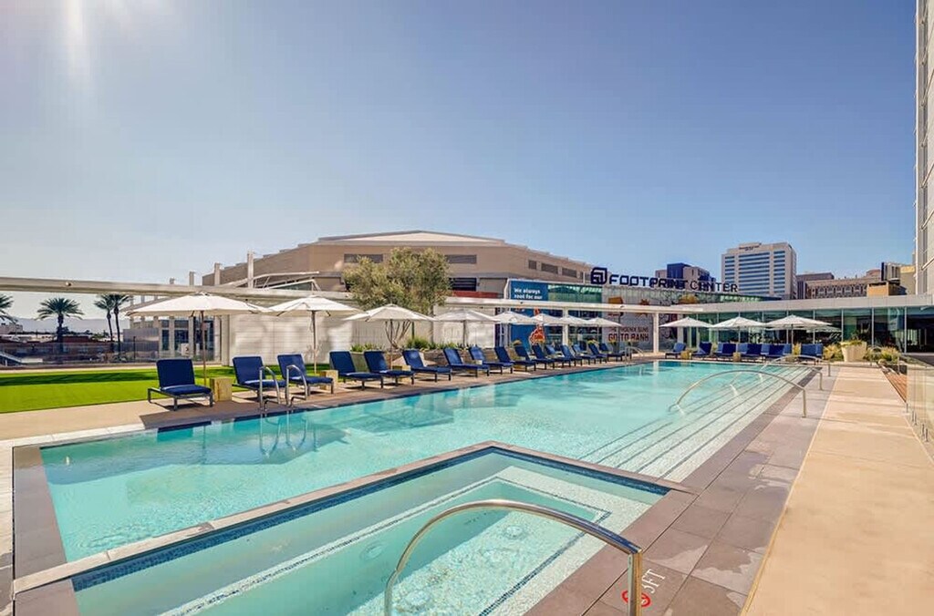 Feel at home in this modern and bright apartment in Phoenix’s entertainment district. This wheelchair-accessible apartment is perfect for a family, group of friends, or business travelers. This apartment has all the amenities necessary to enjoy your stay, including access to a fitness center, co-working and conference room, game room, courtyard, dog park and parlor, indoor and outdoor lounge, swimming pool, hot tub, and bike storage. Valet parking is available at $20 per day. Contact us for monthly parking rates. A pet fee between $100 and $300 will be collected separately, based on stay length, with a maximum of two pets allowed (40lbs combined), excluding Pit Bulls and Bull Mastiffs or similar breeds. Adeline is centrally located in the heart of entertainment, within walking distance to Fry’s Food and Drug, the Mortgage Matchup Center, Chase Field, the Phoenix Symphony, and Heritage Square. With sophisticated dining, shopping, and entertainment experiences just blocks away, Adeline offers a convenient, big-city lifestyle in the center of diverse culture and modern comfort. The property is right next to the Valley Metro light rail system, making it easy to explore the rest of the Valley. This is a smoke-free environment, and any sign of smoking may result in immediate termination and recovery fees beginning at $500. There is a $500 penalty for removing smoke detectors and a $200 penalty for lost key fobs. No weapons or drugs are allowed, and police will be called for any violations. Guests must agree not to disturb neighbors at all times during the stay and must observe quiet hours from 9 pm to 8 am each day. The home is proactively monitored with decibel sensors for compliance with this noise policy. Check-in is at 4 PM, and check-out is at 11 AM, with a $75 per hour late fee. No outside guests are allowed without permission. One towel is provided per guest per stay. A valid photo ID is required to complete the booking. All pets must be on a leash when outside on the property. A pet fee may be charged for guests traveling with an emotional support animal, and the presence of emotional support animals can be declined. To abide by all legal requirements and HOA rules, you will be asked to provide a copy of your official government-issued photo ID, confirm your contact information, and pass through our verification portal. In some instances, a criminal background check may be required. The minimum age requirement for the primary person booking is 22 years old for out-of-town guests and 25 years old for local guests. Registration Number: STR-2024-002926 [SI]