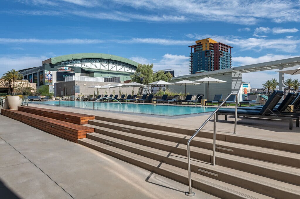 Feel at home in this modern and bright studio in Phoenix’s entertainment district. This studio has all the amenities necessary to enjoy your stay, including access to a fitness center, co-working and conference room, game room, courtyard, dog park and parlor, indoor and outdoor lounge, swimming pool, hot tub, and bike storage. Valet parking is available for $20 per day. Contact us for monthly parking rates. An additional pet fee between $100 and $300 will be collected separately, based on stay length. All pets must be on a leash when outside on the property. Located in the heart of the entertainment district, this apartment is within walking distance of Fry’s Food and Drug, the Mortgage Matchup Center, Chase Field, the Phoenix Symphony, and Heritage Square. Sophisticated dining, shopping, and entertainment are just blocks away. The Valley Metro light rail system is nearby, providing easy access throughout the Valley. Taxis, rideshares, and scooter rentals are also readily available in the area. Smoking of any kind is not permitted within or outside of this apartment, including balconies, patios, or common and/or parking areas. Any sign of smoking is a violation of the stay agreement, which may result in immediate termination and recovery fees beginning at $500. There is a $500 penalty for removing smoke detectors and a $200 penalty for lost key fobs. No weapons or drugs are allowed. Guests must agree to not disturb neighbors at all times during the stay and must observe quiet hours from 9pm-8am each day. Check-in is at 4 PM and check-out is at 11 AM (a $75/hr late fee applies). No outside guests are allowed without permission. One towel is provided per guest per stay. A valid photo ID is required to complete the booking. A maximum of 2 pets are allowed (40lbs combined), excluding Pit Bulls and Bull Mastiffs (or similar breeds). Guests traveling with an emotional support animal may be charged a pet fee, and the presence of emotional support animals can be declined. To abide by all legal requirements and HOA rules, you will be asked to provide a copy of your official government-issued photo ID, confirm your contact information, and pass through our verification portal. In some instances, you may be required to complete a criminal background check. Minimum age requirement of primary person booking should be 22 years old for out of town guests and 25 years old for local guests. Registration Number: STR-2024-002926 [SI]