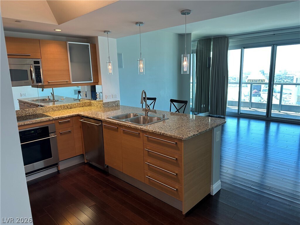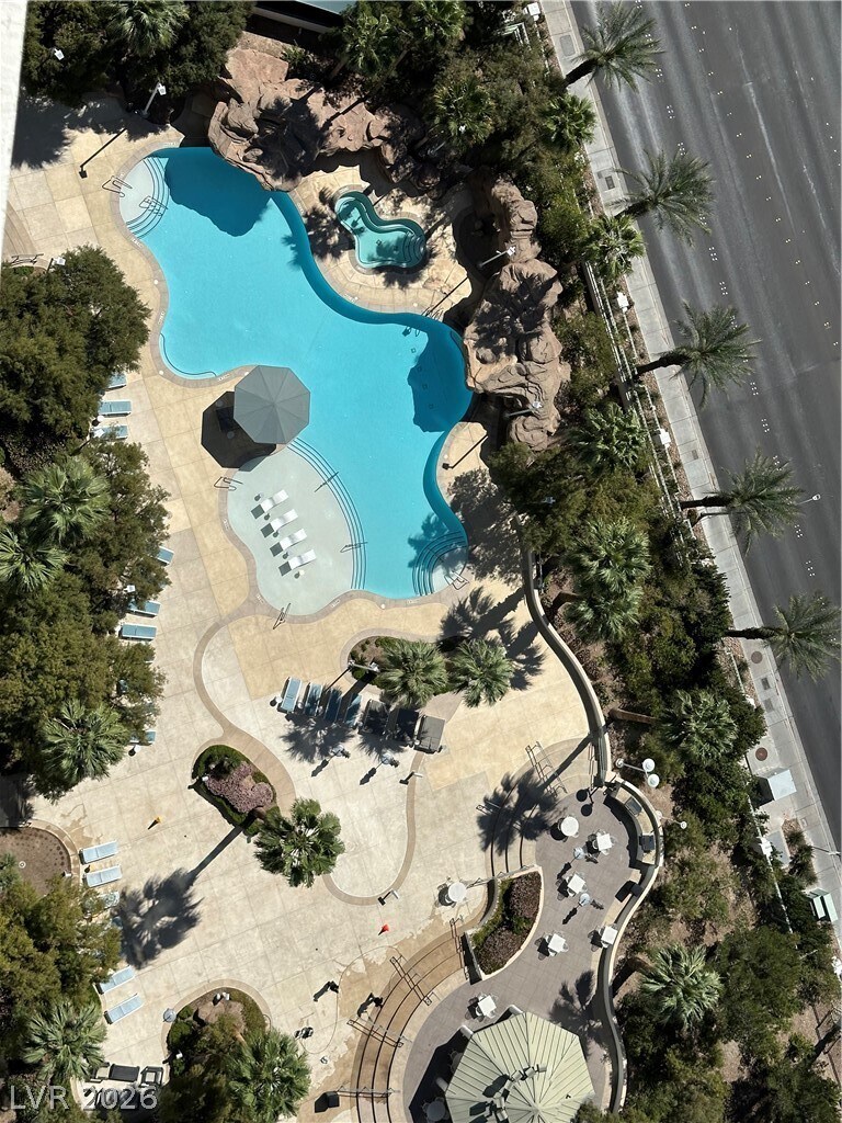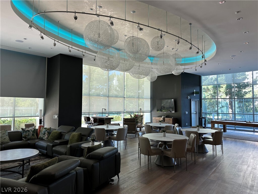 Views definitely are spectacular from this 30th floor residence. This one checks all the boxes; High floor, floor to ceiling windows, oversized neutral porcelain tile in the living spaces, marble bathrooms, solar shades throughout. South facing glass wall has double doors that open up, blending the indoor with the outdoors seamlessly. Located on 10+acres, Turnberry Towers is a luxury, guard gated community, one city block from the famous “Las Vegas Strip.†Amenities include: tennis/pickleball courts, mini putting green, lagoon styled pool w/cascading waterfalls, heated spa, social and conference rooms, 24/7 security, floor access controlled.
