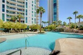 This spacious 1-bedroom, 1.5-bath residence offers an open-concept layout, flooding the interior with natural light and showcasing breathtaking vistas of the Las Vegas skyline and surrounding mountains. Designed with modern elegance, the unit features a gourmet kitchen with granite countertops, high-end stainless steel appliances, and custom cabinetry—perfect for entertaining or casual dining. The primary suite is a serene retreat, complete with a generous walk-in closet and a luxurious bathroom featuring marble finishes, vanity, and a soaking tub. Enjoy indoor-outdoor living with an expansive private terrace, ideal for morning coffee or evening cocktails. Residents of Turnberry Towers enjoy resort-style amenities including a lagoon-style pool with waterfalls, tennis courts, a fitness center, valet, concierge, and 24-hour security. Located just minutes from the Las Vegas Strip, world-class dining, shopping, and entertainment, this is high-rise living at its finest.