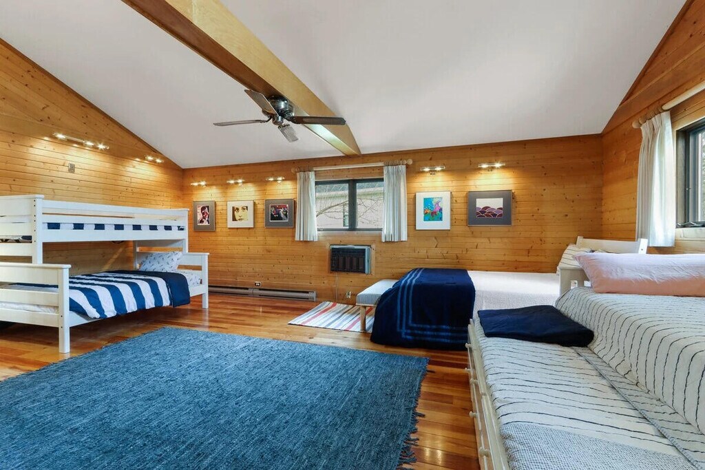 Welcome to Timber Ridge, a unique hillside retreat offering stunning views of Geneva Lake and the charming town below. This character-filled home, once owned by a renowned local artist, blends comfort with creativity — making it the perfect setting for unforgettable family vacations and group getaways. Just a short stroll from downtown Lake Geneva and the Riviera Beach, Timber Ridge provides convenience, charm, and plenty of space for everyone. Inside, you’ll find a bright, open floor plan with cozy gathering spaces and thoughtful details throughout. The main level features two bedrooms, each with a king-size bed and ensuite bathroom, while the expansive upstairs bunk room comfortably sleeps up to 7 guests — ideal for large families or two groups sharing the space. Every corner of the home reflects artistic inspiration, giving it a distinctive warmth that invites you to return year after year. Highlights: • 3 bedrooms, 3.5 bathrooms (sleeps up to 8) • Two main-level king bedrooms, each with ensuite bathrooms • Expansive upstairs bunk room for 7 guests • Open, airy floor plan with artist-inspired details • Fully equipped kitchen with modern appliances • Spacious living and dining areas for family gatherings • Scenic hillside views overlooking Geneva Lake & downtown • Walkable to restaurants, shops, and Riviera Beach • Wi-Fi and smart TV for entertainment & connectivity • On-site parking available Good to Know: • Some stairs are required to reach different levels of the home (see photos). • Tenants will be responsible for snow removal and bringing garbage/recycling to and from the curb Mid-Term Rental Rates: • October – April: $3,050.00/month • September & May: $3,500.00/month • June, July, August: $13,000.00/month Whether you’re planning a family vacation, a group retreat, or a creative escape, Timber Ridge Artist Retreat is the perfect place to call home during your Lake Geneva stay. Contact us today to learn more and secure your stay.