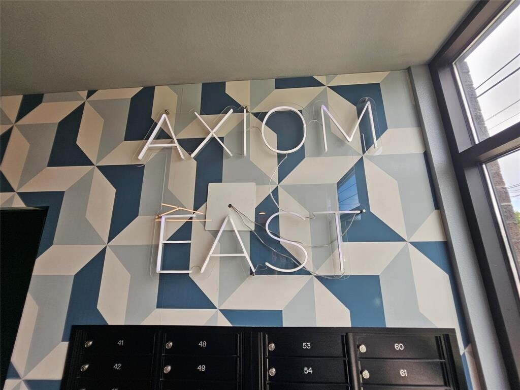 The Axiom Condos are a stylish and conveniently located just east of downtown in Austin's vibrant East Side. Easy & convenient Lifestyle within walking distance to popular spots like the east 6th street area, Kitty Cohn's, Latch Key, and the vibrant E 6th bars, coffee shops, museums, restaurants and food trucks, and plenty of activity at Rosewood Park and Recreation Center. This unit is offered, with all the appliances (refrigerator, washer/dryer) - ready for move in November 1. This is one of the few units with its own balcony. Black out blinds installed with top down and bottom up style. One reserved garage space is included Amenities include secured access, Gated parking garage, resident only rooftop deck lounge area with a Serving area, bar and TV, to enjoy the phenomenal downtown views, the spacious additional outdoor patio lounge area, perfect for soaking up the Austin sun. HOA includes common area maintenance, trash/recycling, cable, & internet for the amenity area.