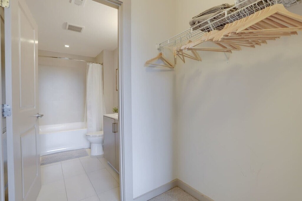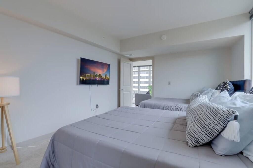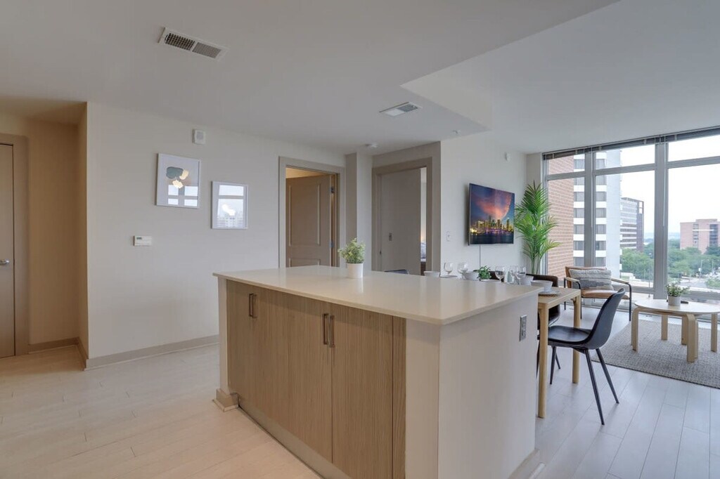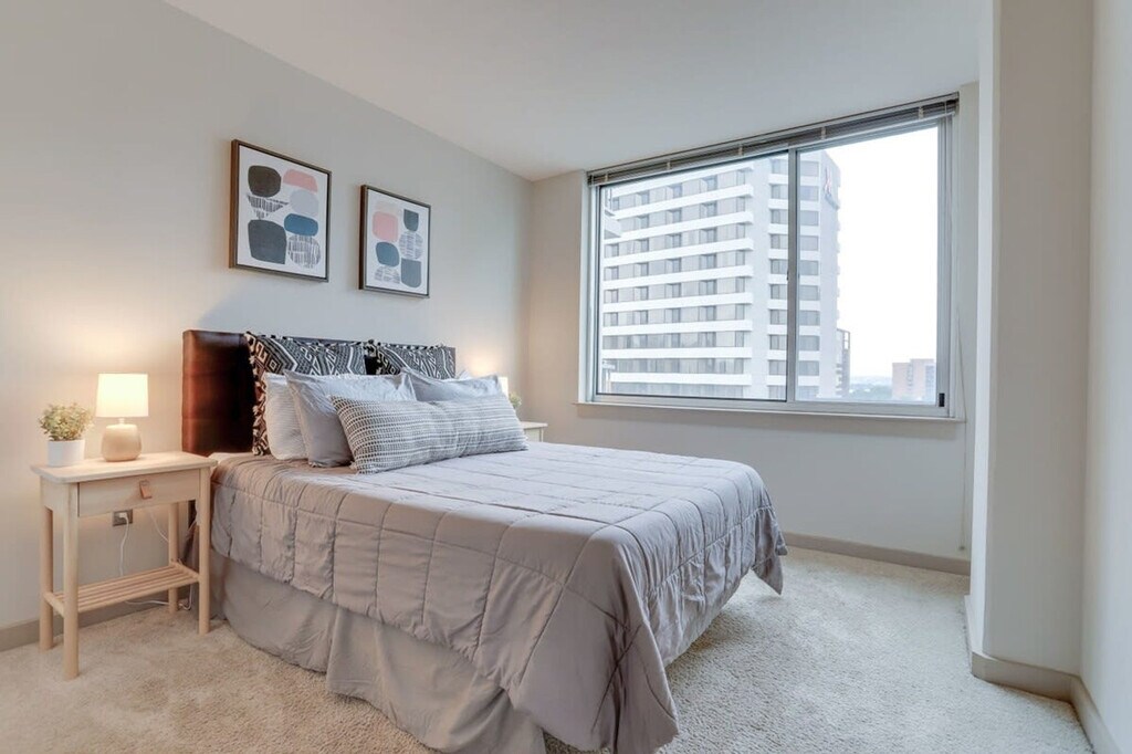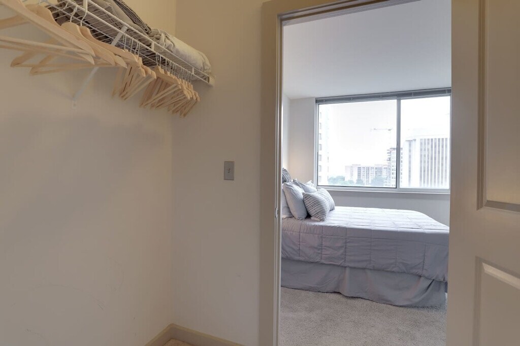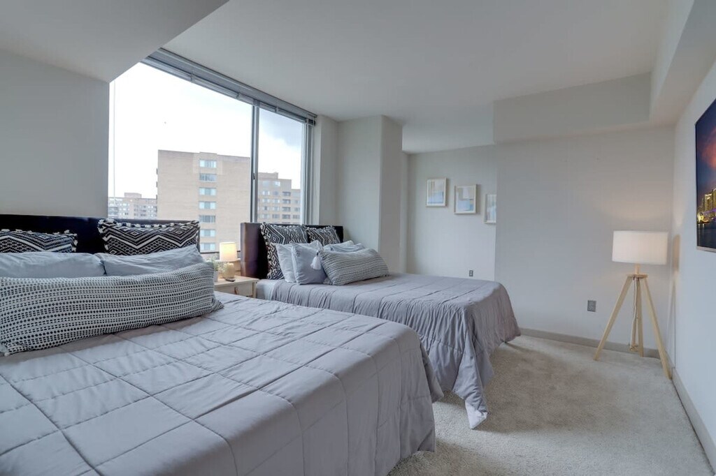 Welcome to your stylish 2-bedroom retreat in the heart of National Landing! This apartment is your perfect home base for exploring Arlington and Washington, D.C. with incredible ease. Feel at home in this bright and modern space. This 2-bedroom, 2-bathroom apartment is thoughtfully designed for comfort and productivity. The spacious master bedroom features two comfortable queen-size beds and a TV. The second bedroom offers a cozy and private space with a comfortable queen-size bed. The welcoming living area features a sofa bed and a TV, ideal for unwinding after a day of exploring. The kitchen is fully equipped with modern appliances and all the essentials you need to prepare meals. This apartment also includes a washer and dryer for a hassle-free stay. Parking is available, and you must display your parking permit at all times to avoid being towed. The garage gate closes at 11:00 PM. This apartment is in the heart of National Landing (Crystal City), a vibrant and well-connected neighborhood perfect for both business and leisure travel to the D.C. area. Experience an unbeatable walkable lifestyle with a short stroll to the Crystal City Metro, connecting you to D.C.'s National Mall in minutes, and steps from premier shopping at Fashion Centre at Pentagon City. You are just a few Metro stops from the National Mall, home to the world-class Smithsonian Museums like the International Spy Museum, and a short distance from the profound Arlington National Cemetery. Getting around from this centrally located apartment is incredibly easy with a 3-block walk from both the Crystal City & Pentagon City Metro Stations, putting all of D.C.'s landmarks at your fingertips. The Reagan National Airport (DCA) is just one Metro stop away, making for a stress-free commute. You are right next to the iconic 18-mile Mount Vernon Trail, perfect for a scenic bike ride or run, and a large and modern Whole Foods Market is located just a short walk away. For the safety and security of all residents, the building requires a brief guest screening prior to check-in, which must be completed before arrival. The building operates a centralized HVAC system in accordance with municipal regulations. Heating runs from October 13 to May 1, while air conditioning is available from May 15 to October 1. During seasonal transitions, HVAC adjustments are managed by the building association based on outdoor temperatures. Smoking inside is charged a $300 fine, and parties on the property are charged a $300 fine. If a FOB/Access Card is lost, the charge is $250 to replace it. Replacement for lost parking tags costs $200–$300, per building policy. A starter kit of supplies is provided; bath towels and washcloths are not provided. Please kindly take care of the objects and equipment that we make available for your use. In case of damage, the damage waiver fee will be covered. It is important that any damage you have caused is reported for the damage coverage to be effective. Only items inside the property are covered. The damage waiver fee doesn’t cover intentional damage (such as damage caused by parties), damage caused by the violation of the rental policy (such as violating a no-smoking policy), any damages exceeding $300 per stay, damage caused by automobiles, damage to personal items, theft or lost items, or damage that isn’t reported during the stay. In case of any damage, which is NOT covered by the Damage waiver fee will be charged. Includes a dedicated desk in the master bedroom for remote work. [SI]