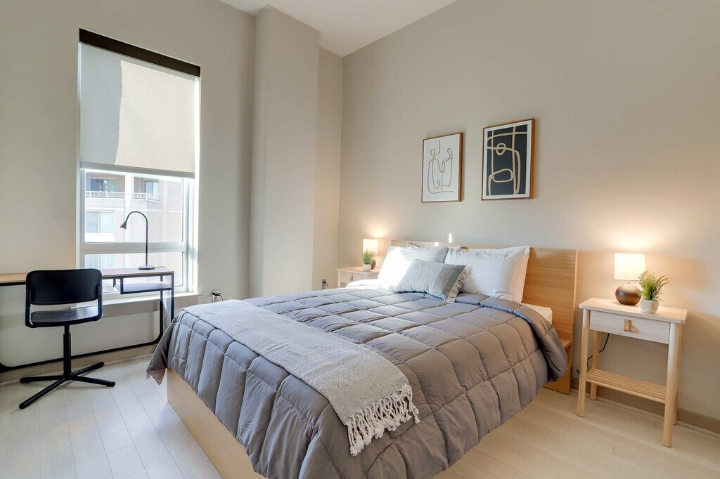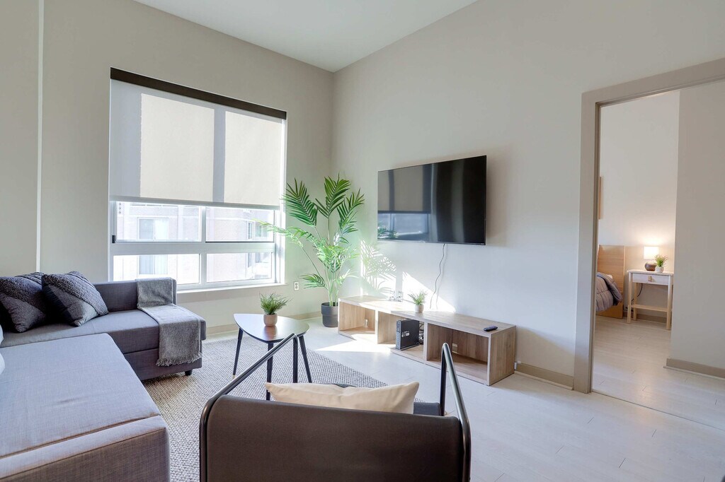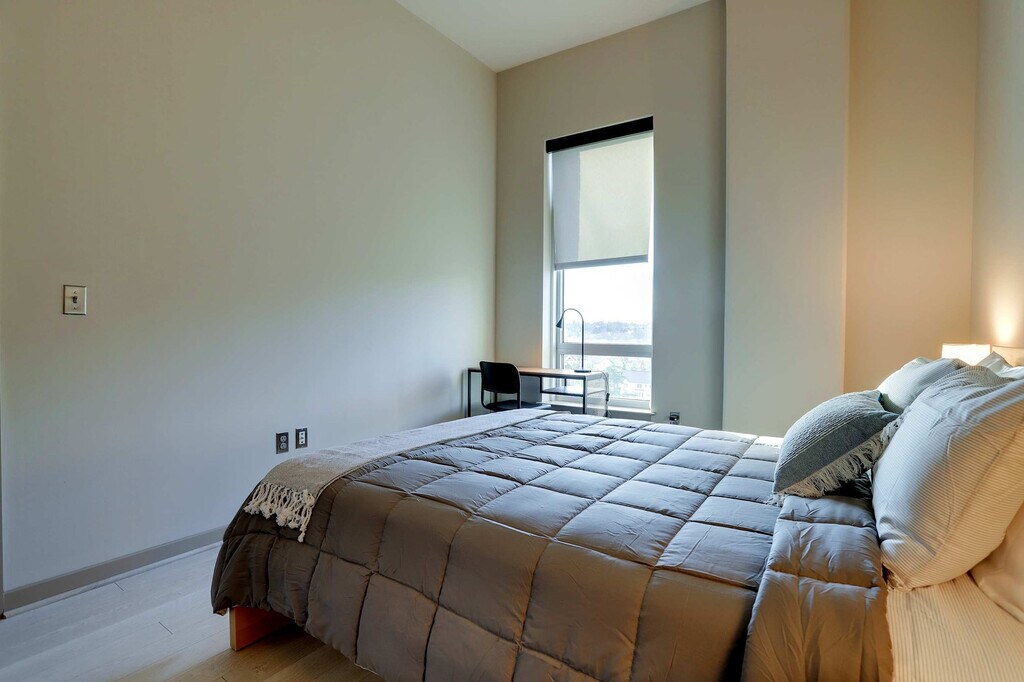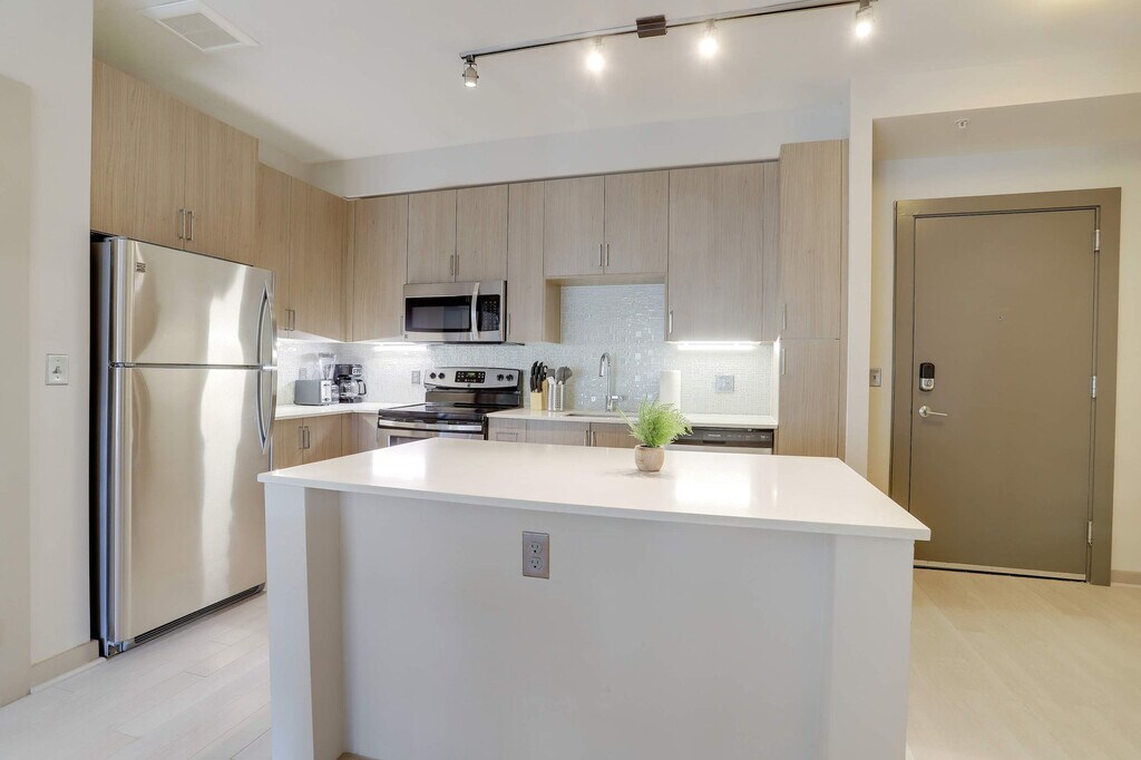 Welcome to your stylish 2-bedroom retreat in the heart of National Landing! Feel at home in this apartment, your perfect home base for exploring Arlington and Washington, D.C., with incredible ease. This bright and modern 2-bathroom apartment is thoughtfully designed for comfort. The fully appointed kitchen is fully equipped with modern appliances and all the essentials you need to prepare meals. In-unit conveniences include a washer and dryer for a hassle-free stay. The comfortable living area features a sofa bed and a TV, ideal for unwinding after a day of exploring. Parking is available, and you must display your parking permit at all times to avoid being towed. The garage gate closes at 11:00 PM. This apartment is in the heart of National Landing (Crystal City), a vibrant and well-connected neighborhood perfect for both business and leisure travel to the D.C. area. Enjoy great local dining options within walking distance, such as Matchbox for wood-fired pizzas, Tacombi for Mexican street tacos, and Nando's PERi-PERi for flame-grilled chicken. Explore fun bars and nightlife at The Freshman, a sophisticated all-day cafe, or Highline RxR, a lively spot with a craft beer selection and games. You are also just a few Metro stops from the National Mall, home to the Smithsonian Museums, and a short distance from Arlington National Cemetery. Getting around is incredibly easy, with the Crystal City & Pentagon City Metro Stations just a 3-block walk away, putting all of D.C.'s landmarks at your fingertips. Reagan National Airport (DCA) is just one Metro stop away. You are right next to the 18-mile Mount Vernon Trail, perfect for a scenic bike ride or run, and a short walk to a Whole Foods Market. The building requires a brief guest screening prior to check-in, which must be completed before arrival. Bath towels and washcloths are not included in the starter kit of supplies. The building operates a centralized HVAC system in accordance with municipal regulations. Heating runs from October 13 to May 1, while air conditioning is available from May 15 to October 1. During seasonal transitions, HVAC adjustments are managed by the building association based on outdoor temperatures. Smoking inside is charged a $300 fine, and hosting a party on the property is charged a $300 fine. Replacement for lost parking tags costs $200–$300, per building policy. Lost fob/access cards cost $250 to replace, per building policy. The master bedroom features a dedicated desk for remote work. [SI]