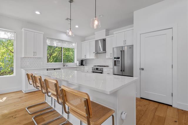 Discover refined urban living in one of Dallas’s most vibrant and walkable neighborhoods. This three-story townhome blends streamlined architecture, polished interiors, and everyday convenience for a truly elevated lifestyle. The main level feels bright and airy with expansive windows that bring in abundant natural light. The chef-inspired kitchen impresses with quartz countertops, a waterfall island, sleek white cabinetry with designer hardware, geometric tile accents, and premium stainless steel appliances. The open layout flows seamlessly into the living area and extends to a covered balcony perfect for morning coffee or unwinding in the evening. The ground floor flex suite offers exceptional versatility and functions beautifully as a home office, fitness room, studio, or private guest retreat. Upstairs, both bedrooms provide a calming escape with spa-style bathrooms, thoughtful storage, and a modern design that feels elevated yet warmly inviting. Property Highlights • Motorized window treatments • High-end appliance package • Custom cabinetry and built-ins • Garage prewired for EV charging The HOA includes yard care, water, and trash service, supporting a low maintenance, lock and leave lifestyle. Perfectly positioned near top restaurants, boutique shopping, and Dallas nightlife, 2222 Moser Avenue No. 111 delivers a rare blend of modern sophistication and urban energy for buyers seeking convenience without compromise. Schedule your private showing today and experience the best of Knox Henderson living.