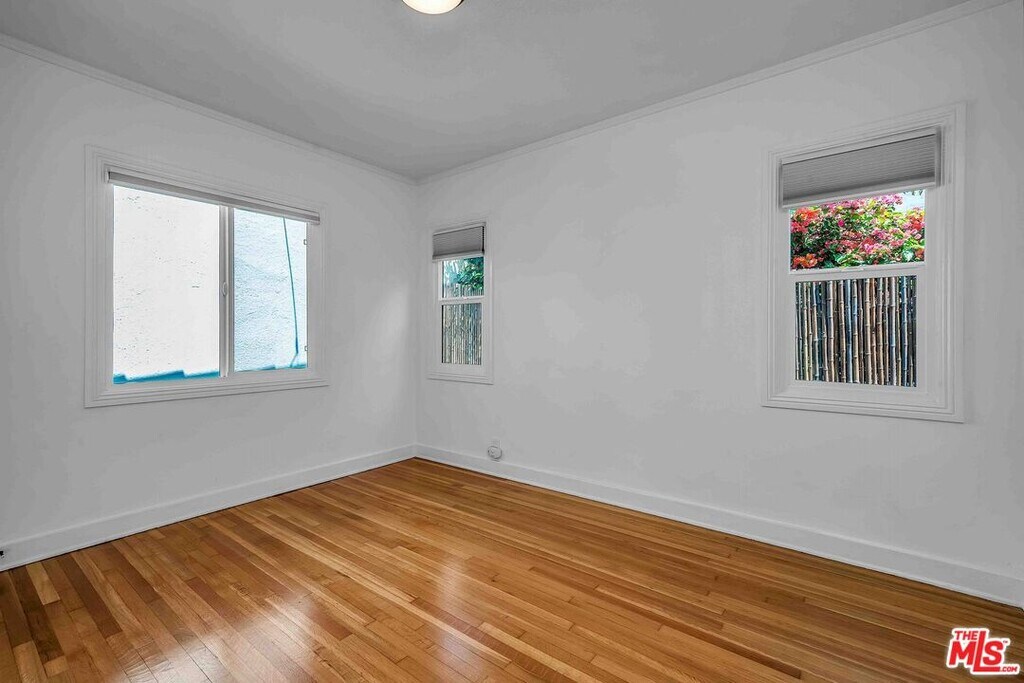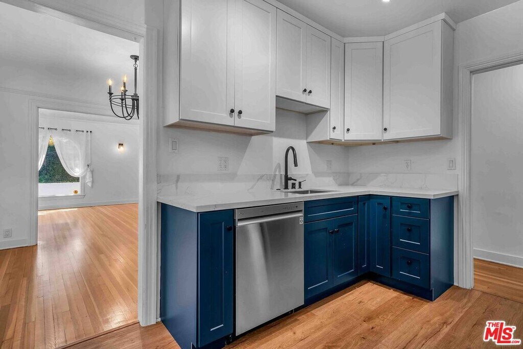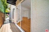 Newly remodeled 2-bedroom, 1.5-bath residence in a prime Beverly Hills location, offered as one of two homes in a charming side-by-side duplex. With its own address, private entrance, and no shared common living spaces, the home offers a rare sense of privacy and a single-family-style living experience in the heart of the city. Surrounded by lush landscaping, the residence features French windows in both the living and dining rooms, a decorative Batchelder fireplace, and expansive living and dining areas highlighted by original oak hardwood floors throughout. The updated kitchen is appointed with new cabinetry, quartz countertops, and stainless-steel appliances, including a range with overhead vent, dishwasher, and refrigerator. The dining room opens to a side yard and provides convenient access to both the front and rear of the property. A private patio with a retractable automated awning creates a welcoming outdoor setting, ideal for morning coffee or relaxed evening entertaining. Additional highlights include central heating and air conditioning, a private laundry room with new washer and dryer, located (reserved exclusively for this residence), plus additional storage space. The property also includes controlled access to a two-car garage with EV charging capability, offering flexibility for parking or potential use as a home office, gym, art studio, or creative workspace. MLS# 26659681