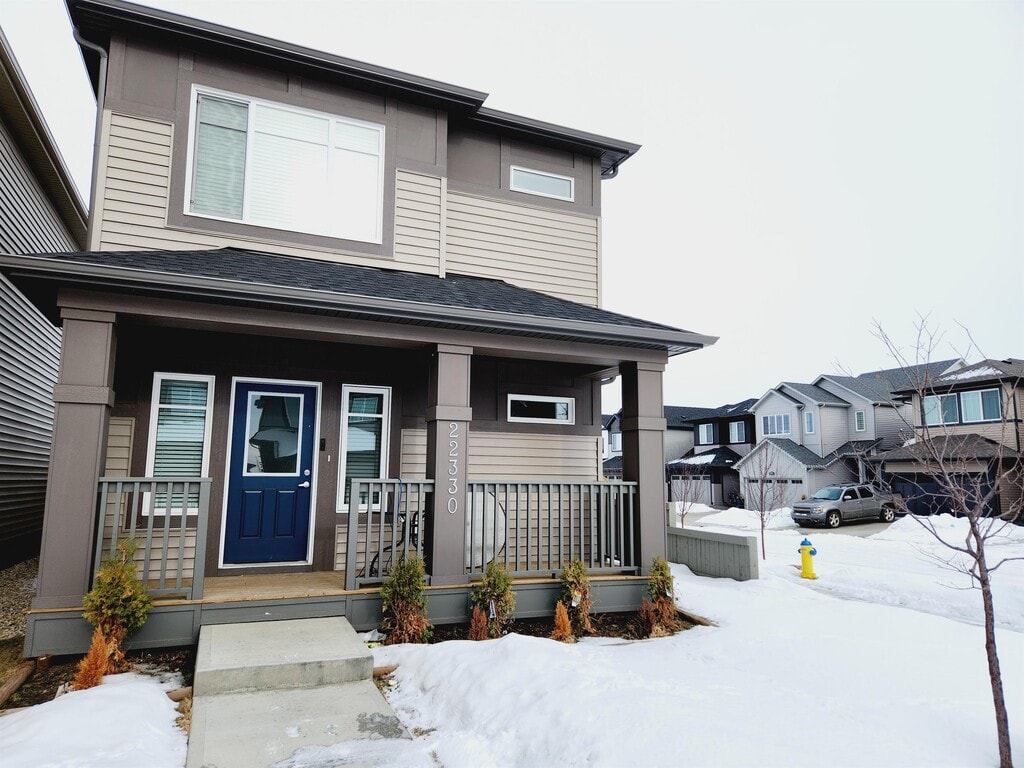 This is a single family 2 storey, 3 bedrooms, 2.5 Baths home with a double detached garage. Enjoy that morning coffee on the front veranda, a spacious entry welcomes you to a beautiful open-concept kitchen/dining/living room floor plan with luxury vinyl plank flooring throughout the main floor. The unit is full of natural light from the large picturesque windows. Large kitchen with flush eating bar, quartz counter-tops and tons of cabinet space, and matching stainless steel appliances. A 2 piece vanity rounds out the main floor. Head upstairs to find 3 bedrooms, including the large primary bedroom with a 5 piece ensuite and an oversize walk in closet. There are 2 additional generous sized bedrooms, a 4 piece main bathroom and an UPSTAIRS LAUNDRY. Fully fenced and landscaped backyard with a deck. The unit comes with a double detached garage. The basement is a separate unit and is not accessible. Tenant is responsible for 60% of utilities. Close to all amenities, including the new David Thomas King K-9 school and the Anthony Henday. Single family 2 storey home 3 bedrooms, 2.5 Baths Double detached garage Located in new community of Secord in West Edmonton Open concept floor plan Luxury vinyl plank flooring throughout the main floor Large kitchen with island Tons of cabinet and counter space Quartz countertops Stainless steel appliances Primary bedroom with 5 piece ensuite bath and walk-in closet Washer & laundry on TOP floor Fully fenced and landscaped backyard Deck in backyard Tenant is responsible for 60% of utilities. Close to all amenities, including the new David Thomas King K-9 school and the Anthony Henday.