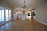 Available for rent now. New home offering a bright, open layout and modern finishes throughout. The main level features a welcoming foyer, dedicated home office, spacious living area with electric fireplace, and a dining space that opens to a covered, brick-paved patio through sliding glass doors. The kitchen is well-appointed with granite countertops, a large center island, tiled backsplash, generous cabinetry, and a black appliance suite with wall oven and microwave. A convenient main-level laundry and mudroom provide direct access to the attached two-car garage. Upstairs, the primary suite offers a comfortable retreat with a walk-in closet and a private bath featuring dual vanities, a soaking tub, separate shower, and private water closet. Additional bedrooms are generously sized, including one with a vaulted ceiling, and are served by a spacious hall bath. The unfinished walk-up basement provides excellent storage and future flexibility, complete with an egress window and double glass doors. Dual heat pumps, electric water heater, an oversized driveway, and convenient access to major routes, shopping, and dining complete this offering.