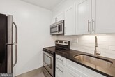 Beautifully appointed studio on a high floor of The Dorchester on Rittenhouse Square! Enter through a long foyer into the spacious great room with a wall of oversized windows providing partial views of The Square and excellent natural light. The separate updated kitchen features white shaker cabinetry, black solid surface countertops, white subway tile backsplash, stainless steel appliances, and a gray tile floor. There is a separate dressing area with excellent closet space and built-in wood vanity that leads to the full bathroom with tub shower and white tiling throughout. Additional highlights include a large walk-in closet and parquet wood floors throughout. Residents enjoy a twenty-four hour doorman and all utilities included in rent except basic cable/internet. Use of the building’s state-of-the-art fitness center, seasonal rooftop pool club, and valet parking in the building’s underground garage are available for an additional fee. No pets permitted.