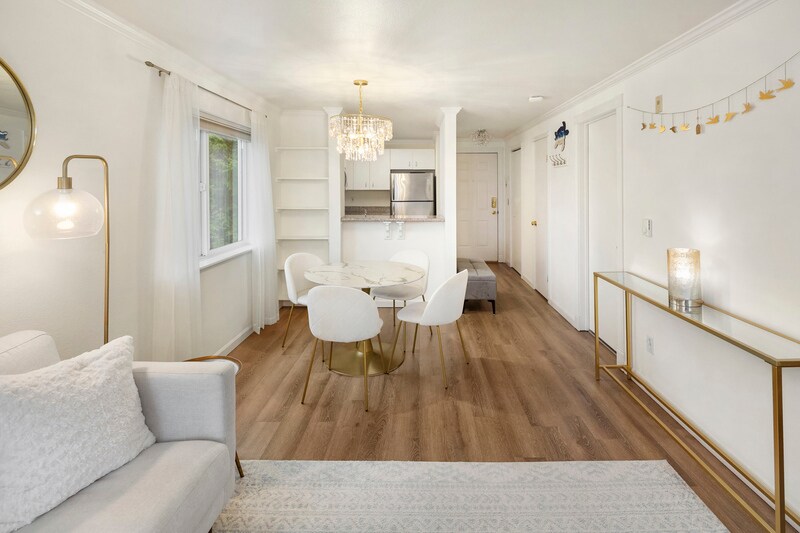 This top floor corner unit comes fully furnished and offers dramatic views of Elliott Bay, passing cruise ships, and the Olympic Mountains. With a west facing orientation, the home is filled with natural light, refreshing summer breezes, and unforgettable sunsets. The open concept layout features luxury vinyl plank flooring, a white brick fireplace, and a custom built in bookcase. Sliding doors open to a private balcony, perfect for morning coffee or evening wine while enjoying Seattle’s skyline. The modern kitchen is equipped with stainless steel appliances, white cabinetry, and a breakfast bar that connects to the living area. The spacious bedroom includes a walk in closet, private balcony access, and an ensuite bath with a large vanity. Convenience is enhanced by a separate laundry room with full sized washer and dryer plus built in storage. Smart home technology with Alexa voice control, freshly repainted interiors, and thoughtful updates add comfort and style. The location offers exceptional walkability with Whole Foods, Trader Joe’s, boutique shops, fitness centers, and award winning restaurants nearby. Parks such as Kerry Park and Elliott Bay Park provide green escapes, while downtown, South Lake Union, and Interbay are minutes away by car or Metro routes. This Queen Anne rental combines modern convenience, iconic views, and unbeatable access to Seattle’s most vibrant neighborhood. Lease Terms 1. Rental Rate. $2,400 per month 2. Term. 12 months minimum term. 3. Utilities. Water, Sewer, and Garbage are included in the monthly rent. Electricity, Cable and Internet are tenant's responsibility. 4. Deposit. $2,000 (refundable) plus $200 cleaning fee (non-refundable). 5. Parking. One (1) gated parking spot in a secure indoor garage is included in the monthly rent. 6. Pet Policy. No Pets Policy.