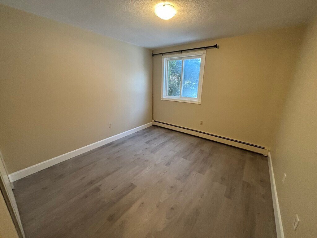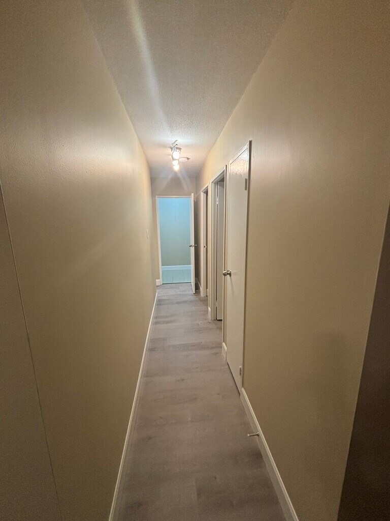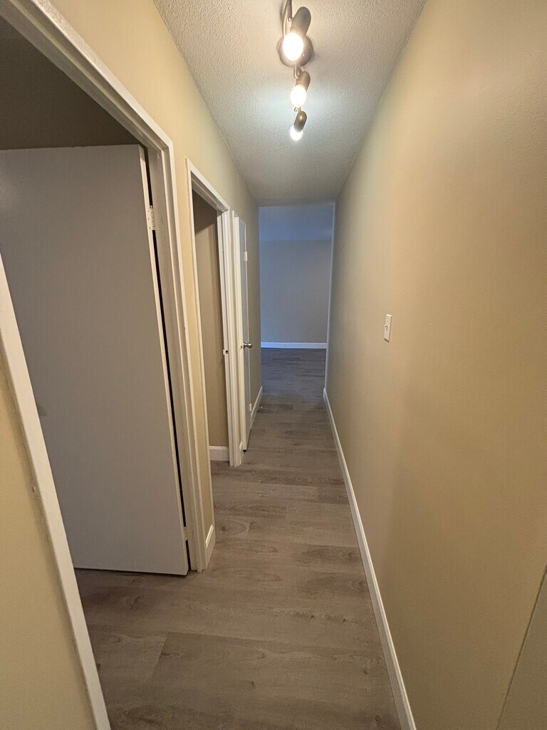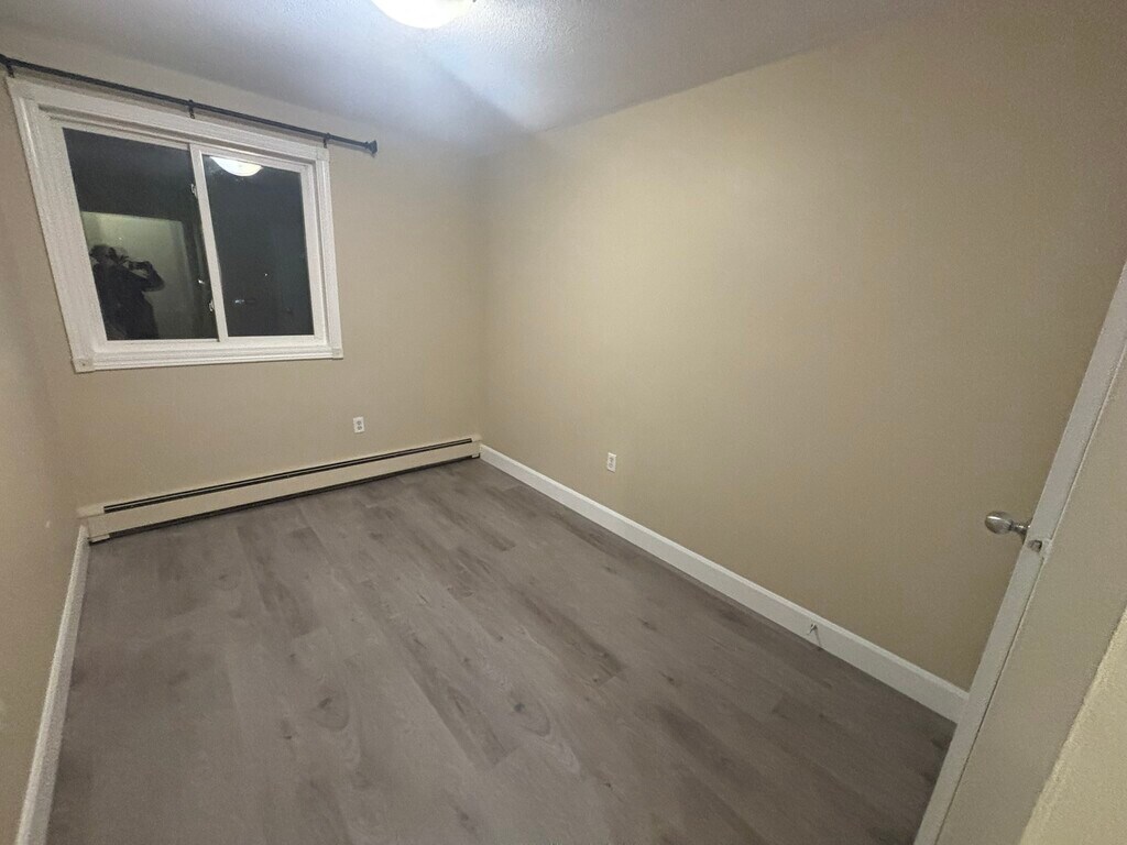 Final touches are nearly completed on this ground-floor apartment. Offering plenty of storage, large windows and new flooring, it's a great for a couple looking for more space as the second bedroom is ideal for an office or a small child's bedroom. Planned Renovations & Improvements: -Repair front door peephole -Fresh paint throughout the entire unit -New flooring and baseboards in the living room, dining area, hallway, and bedrooms -Patio door upgrades including added safety bar, new blind, and updated lighting -Minor electrical and wall finishing updates (including new faceplates and lighting) -Kitchen maintenance and updates, including faucet adjustments, sink hardware replacement, and exhaust fan repair -Installation of curtain rods in both bedrooms -Bedroom updates including painted window frames and ceiling repairs -Replacement of ceiling fan with updated light fixture in the large bedroom -Door hardware updates in the large bedroom -Bathroom updates including new plugs, fixtures, transitions, and accessories -Fresh caulking around sinks and the entire tub area Additional costs: - utilities - hydro and water, sub metered by Metergy, average bill is $80/month - parking - $50/month or $65/month for covered (1 space only) - laundry - pay per use laundry room operated by the PayRange app Rental requirements: - proof of employment - landlord reference - credit score 650+ Viewings are available weekdays until 7 pm. Make an inquiry on the Contact Us page on our website to book a viewing today! 57 Unit - 6 Storey, elevator in building, common laundry room on main floor, operated through PayRange app