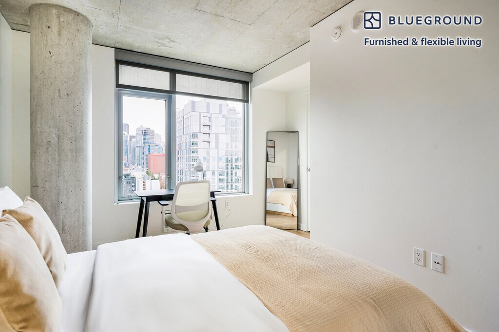 Discover the best of Seattle, with this one bedroom apartment in Belltown. It’ll be easy to simply show up and start living in this fashionably furnished apartment with its fully equipped kitchen, stylish living room, and our dedicated, on-the-ground support. (ID #SEA976) The advertised rate of $2,280/month is the lowest available price, based on a 2 month(s) and 19 day(s) stay with a move-in date of February 1, 2026. If you’re looking for a 1-year stay, the rate is $2,420/month. Rates vary depending on the duration of stay, season, and other parameters. For exact pricing and additional pricing components, please visit our website and enter your desired move-in and move-out dates. The rate is applicable when billed upfront; it can be higher if billed in multiple payments. Brokers are welcome to reach out. Were you looking for an unfurnished lease? Try Blueground instead and upgrade from unfurnished to furnished living: - Furnished at rates comparable to unfurnished - No setup or furniture costs - save thousands - Move-in ready - save time, just bring your suitcase Designed with you in mind Gorgeous furniture, fully equipped kitchen, smart TV, and a premium wireless speaker are just a few of the amenities you’ll find inside this one bedroom apartment. Ideally located in Seattle, you’ll find a lot to love outside as well. When you’re ready to relax, you’ll be happy to discover every Blueground bedroom comes with superior quality mattresses, luxury linens, and cozy towels. We handle everything so you can simply show up and start living. This apartment also offers in-apartment laundry. Sleeping arrangements Queen Bed, 63in/160cm Amenities Building amenities unique to this one bedroom apartment include an on-site: - Doorman - Dryer - Elevator - Washing machine - Lounge - Parking - Pets allowed Arrival and ongoing support The entire apartment is yours to enjoy! Throughout your stay, you’ll have access to our Client Experience team through the Blueground App. You can schedule additional cleanings, submit maintenance requests, and view our neighborhood recommendations with just a few taps. We’ll share all details upon confirmation of your stay. Ideally Located This furnished apartment is located in walkable Belltown. With an enviable proximity to the water, you will also find yourself striding distance to Amazon’s HQ, Pike Place, Denny Triangle and Lower Queen Anne. Belltown itself has no shortage of sushi bars, java joints and nightlife options concentrated along 1st and 2nd Avenues. Connect yourself to the rest of the city with local buses, the South Lake Union Streetcar and the area’s protected bike lanes. Runners will love starting their jog at the Olympic Sculpture Park as the Elliott Bay Trail extends northwards. Other things to note Building amenities may have an extra cost. This Blueground apartment has flexible lease options, allowing you to book it for one month, a year, or more. Pets are welcome, though weight limits and breed restrictions apply and may incur fees. Parking is offered based on availability and is subject to a fee. We take great pride in ensuring every photo displayed is shot in our own units with our actual furnishings. That said, we regularly refresh our decor and furniture arrangement, which may differ from what’s pictured. [SI]