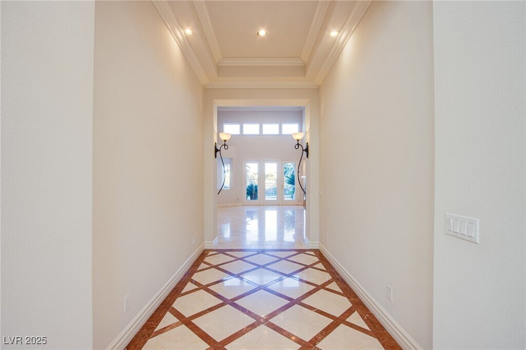 Experience luxury living in one of Summerlin’s premier guard-gated communities—Red Rock Country Club—known for exceptional privacy, security, & three gated entrances! Set against the stunning Red Rock Canyon, this contemporary single-story 3-car garage home blends comfort, elegance, & resort-style living. It features 3 private bedroom suites, each with its own bath, plus a den with an additional bath. Marble & luxury vinyl flooring throughout—no carpet anywhere. The living room overlooks the pool & golf course & includes vaulted ceilings with a gas fireplace. A sleek wet bar with a wine wall makes entertaining effortless. The formal dining room features tray ceilings, while the rotunda creates a charming nook. Chef’s kitchen with a walk-in pantry, island, double ovens, ample cabinetry, & a built-in workspace. Backyard private retreat w/a pool, spa, waterfall & covered patio. Located only minutes from the VGK practice facility, Las Vegas Ballpark, top dining & shopping!