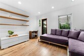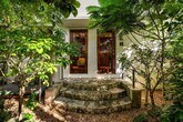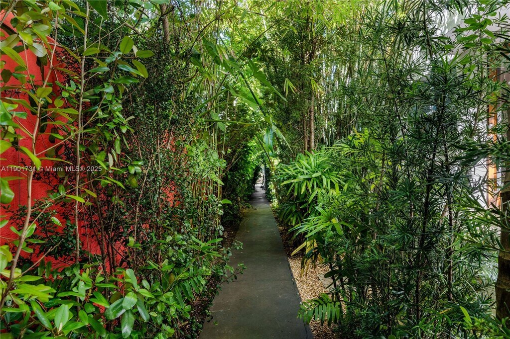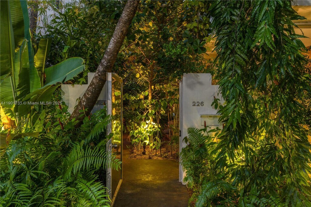 South of Fifth Beach Bungalow located on a premiere quiet block, nestled in a lush tropical botanical garden. This 2BD/2BA, 922 SF sanctuary blends natural textures with modern design. Warm white oak floors and Ipe wood walls create a serene, organic backdrop accented by Italian custom-built furniture and décor. The kitchen is a showpiece, featuring green marble counters, floating cabinetry, Blanco sinks, and a Fulgor Milano oven. The blue Spanish-tiled bathrooms with skylights evoke coastal Mediterranean charm, while the LG laundry area and Whirlpool dishwasher add everyday convenience. Experience true Miami Beach living in the heart of SoFi: a coveted area with short distance to world-class dining and the beach.