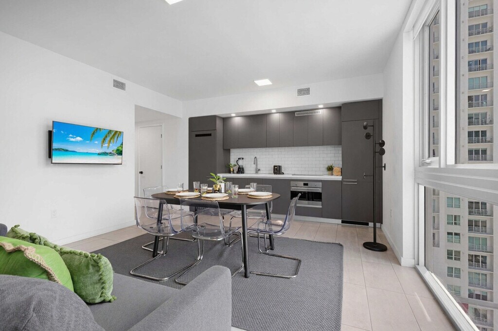 The advertised rate of $4,160/month is the lowest available price, based on a 1 month(s) stay with a move-in date of September 2, 2026. Rates vary depending on the duration of stay, season, and other parameters. For exact pricing and additional pricing components, please visit our website and enter your desired move-in and move-out dates. The rate is applicable when billed upfront; it can be higher if billed in multiple payments. Welcome to your luxury retreat offering breathtaking views from the heart of Downtown Miami. This apartment is the perfect home base for exploring the city's best, with an unbeatable location just steps away from world-class concerts and events at the Kaseya Center, the beautiful green space and bay views of Bayfront Park, and acclaimed dining like Cvi.che 105 and Motek Downtown. Enjoy a stunning rooftop pool and premium amenities for an unforgettable stay. Step into a stylish and smartly designed space, created for ultimate comfort and convenience during your Miami stay. Relax in a modern living space featuring a comfortable sofa bed and a TV for entertainment. Unwind on a plush full-size bed, ensuring a great night's sleep after a day of exploring. A sleek, fully equipped kitchen has everything you need to prepare meals and snacks with ease. Refresh in a pristine, modern bathroom with premium fixtures and essential amenities provided. A washer and dryer are located inside the unit for your ultimate convenience. N/A Your condo is in the vibrant heart of Downtown Miami, putting the city's best culture, dining, and entertainment right at your doorstep. Enjoy top-tier dining with incredibly popular and authentic Peruvian cuisine at Cvi.che 105, award-winning cocktails and exceptional pasta at Jaguar Sun, and outstanding Israeli-Mediterranean food at Motek Downtown. For craft cocktails and nightlife, visit Over Under for creative cocktails and great bar food, or Lost Boy Dry Goods for a laid-back pub perfect for craft beer and casual drinks. You are within walking distance of the Pérez Art Museum, the Phillip and Patricia Frost Museum of Science, and the Skyviews Miami Observation Wheel. Getting around is effortless from this unbeatable central location, with Bayfront Park, Bayside Marketplace, the Kaseya Center, and countless restaurants just a short stroll away. You are just one block from the Metromover station, offering free and easy connections throughout Downtown and Brickell. The Metrorail and Brightline are also nearby. The area's best-stocked supermarket, Whole Foods Market, is a short walk away, perfect for grabbing groceries, snacks, or high-quality prepared meals. Guest registration is required, and the primary guest must be present with a valid ID for check-in. Enjoy keyless entry with a smart lock app and multiple digital codes for easy access. Loud noise and parties are strictly prohibited, and violations may result in significant fines from building management. Smoking is not allowed indoors, as it may result in a fine. Check-in is at 4:00 p.m., and check-out is at 11:00 a.m. Late check-out requests require 24 hours' notice and may incur an additional cost. Package deliveries to the property address are not allowed. In case of any lost linens or apartment keys, an additional cost will be charged to replace them. Please turn off the air conditioning when leaving to maintain a comfortable environment for everyone. N/A [SI]
