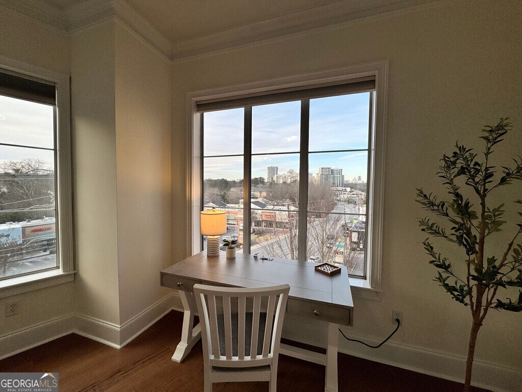 This is it! The beautiful, light filled corner unit, 2 bedroom 2 bathroom luxury condo rental that you've been looking for! Complete with incredible living spaces, ample storage, a light filled work from home space, true primary bathroom, and a separate dining room! The unit is available for immediate occupancy and requires a minimum lease duration of 12 months. Basic furniture items can be included in the monthly rent if a tenant wishes. Call Adam Weldon Fox to schedule your own private tour today. Upon entering this unit, you're greeted with an architecturally significant archway that leads you into a charming dining room or office space. Down the wall, lies the gourmet kitchen, complete with stone countertops, stainless steel appliances, and LED under cabinet lighting. Just beyond the kitchen is the living room, complete with french doors leading to a balcony that's perched high above Peachtree Road and the Buckhead skyline, offering the perfect place to unwind with a cocktail after a long day. Around the corner, the light filled work from home space features large picture windows that look out to the northwest at the picturesque Buckhead skyline, which is sure to keep you motivated throughout the work day and enables you to enjoy the most stunning sunsets each evening as you wrap up your work. To one side of the living space lies the primary suite, complete with walk in closets, and a true primary bathroom, a rare find in condo living. Inside, two vanities, a whirlpool tub, glass shower, and extra storage make your morning routine a dream. On the other side of the living space, a secondary bedroom, adjacent guest bathroom, and laundry closet, featuring in unit laundry, complete the unit. But that's not all residents of this luxury condo get to enjoy! Next door, at The Astoria, residents enjoy access to World Class Ammenities, including a Swimming Pool, Hot Tub, Outdoor Gas Fire Pit, Luxurious Club Room, Conference Room, and Gym - complete with separate Weight Training and Cardio rooms. Back at The Aramore, residents also enjoy access to another rooftop lounge space, complete with a grill and adjacent wet bar. Assigned, gated parking spots are available for residents as well. Reach out to Adam Weldon Fox to schedule your private tour of this luxurious condo today! MLS ID 10683037