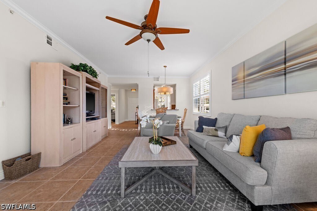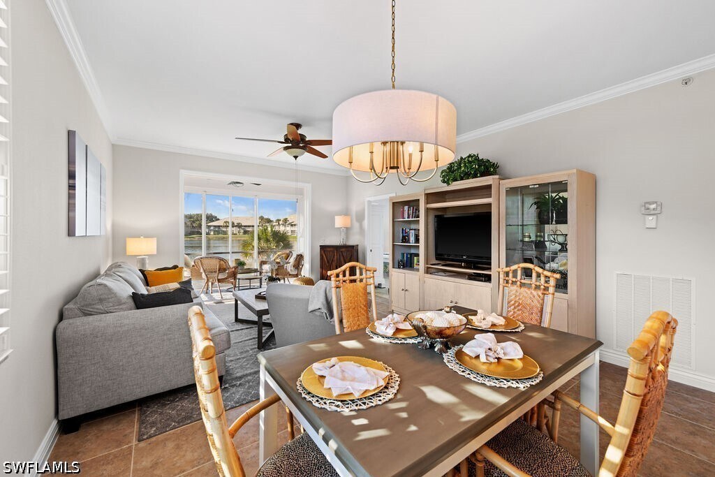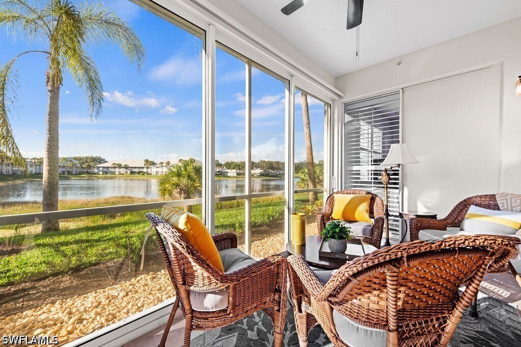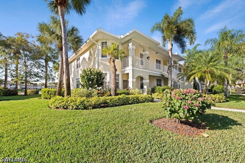 Available for 2026 & 2027 Off Season Only. Are You Ready for Endless Sunsets? This darling & immaculate 2 BR 2 Bath,1st floor end unit has rear Western exposure overlooking a lake that will provide non-stop breathtaking sunsets! Decorated in gorgeous coastal colors and furnishings,this unit is offered fully furnished & turnkey. Featuring a split level floor plan along with granite counters and light & bright eating area,along with brand new flooring. Spacious master bedroom with walk-in closet,attached bath with double sinks and a large shower. Separate & private guest room with a large walk-in closet & full bath right next to it. You will love the great room that walks out to a screened lanai offering stunning lake views. Stonebridge is a friendly,amenity rich,gated golf country club community. It has a gorgeous Clubhouse where both fine & casual dining are offered. In addition,there is an attended state of the art fitness center,5 Har-tru lighted tennis courts,and a very challenging 18 hole golf course. This fantastic North Naples location is 10 minutes to the beach and within minutes to fabulous shopping,restaurants,and nightlife of Mercato.
