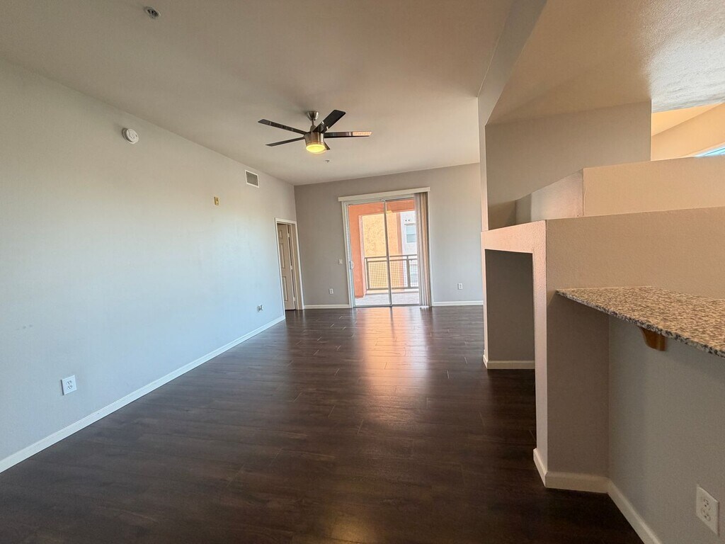 Resort Style Living! Minutes from Strip and Airport! Kitchen w/granite counters, Stainless steel appliances. Laminate Wood Flooring, Large Dining Area, 2 full baths, Master Bedroom, Walk in closet, Nice Second Bdrm, ASSIGNED INSIDE PARKING, 24 HR guard gate, Amenities - 2 Story State of Art Gym, pools, spa, dry sauna, tennis courts. Condo is scheduled to be fully repainted and cleaned in the next 5 days.