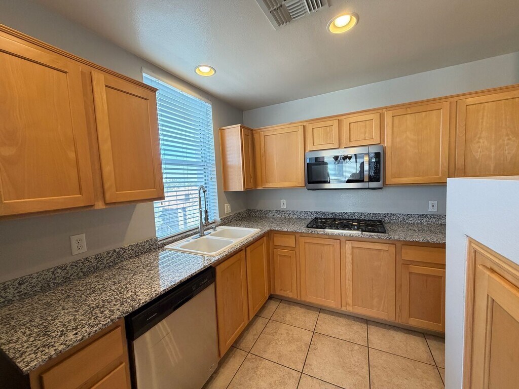 Resort Style Living! Minutes from Strip and Airport! Kitchen w/granite counters, Stainless steel appliances. Beautiful Laminate Wood Flooring, Large Dining Area, 2 full baths, Primary Bedroom, Walk-in closet, Nice Second Bdrm w/walk-in closet, ASSIGNED INSIDE PARKING, 24 HR guard gate, Amenities - 2 Story State of Art Gym, pools, spa, dry sauna, tennis courts. Make this amazing Condo your next Home!