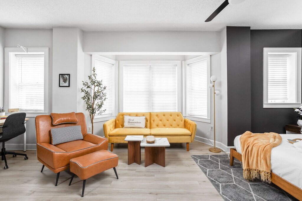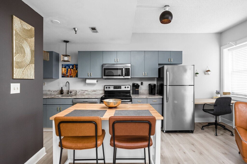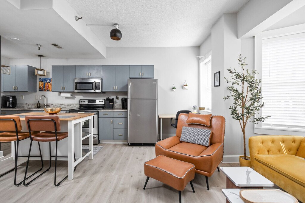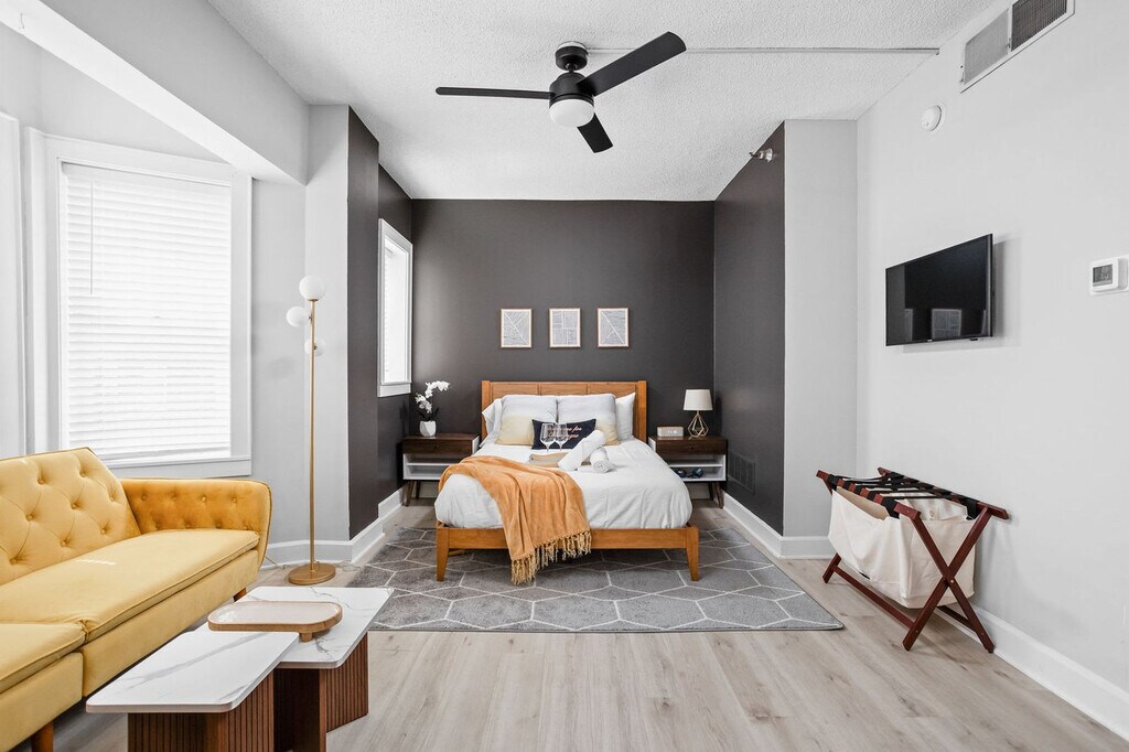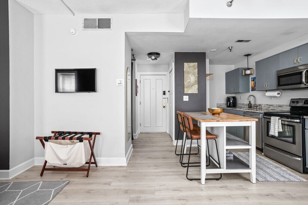 Feel at home in this modern downtown Indy condo with private parking and smart lock entry. Located in the historic Renaissance Tower, a 1907 landmark, this studio condo offers a unique blend of vintage charm and modern comfort. With original breezy windows, a small classic elevator, and sometimes slow-to-warm water, your stay will be truly one-of-a-kind. Just steps from Mass Ave and downtown Indy, this space is perfect for a weekend getaway or an extended stay. This thoughtfully designed studio condo is an urban retreat for solo travelers, couples, or business visitors. It features a plush full-size bed, a fully equipped kitchen with stainless steel appliances, and a dedicated dining/workspace. Enjoy the convenience of a coffee bar with complimentary coffee, oatmeal, popcorn, and breakfast bars. The full bathroom is equipped with modern fixtures and essentials, ensuring a comfortable stay. This pet-friendly property requires a pet fee and adherence to house rules, including no pets on furniture and no unattended pets. Any damage caused by pets is the guest's responsibility and may result in extra fees. On-site washers and dryers are available on the 1st floor for a fee, payable by app. Late check-in is available for an additional fee, subject to availability. Nestled just steps from Mass Ave, the Bottleworks District, and the Cultural Trail, this neighborhood is known for its walkability and vibrant mix of dining, shopping, and entertainment. With historic architecture and proximity to the city’s top attractions, it’s ideal for professionals and anyone seeking an active urban lifestyle. Enjoy easy access to coffee shops, local breweries, parks, and public transit. Check-in is required by 7:45 PM to access the key fob in the lobby, with a late check-in option available for an additional fee. The property is pet-friendly with specific house rules and fees for any damage or extra cleaning required. A $2000 fee applies for parties and a $1000 fee for smoking violations. The maximum property capacity is 3, with no unregistered guests allowed. Trash must be disposed of and the dishwasher started before check-out. A third-party verification and signed rental agreement are required for all reservations. The studio includes a dedicated dining/workspace, perfect for remote work. While a laptop computer is not included, the space is equipped to support your work needs. Registration Number: SRP-001165