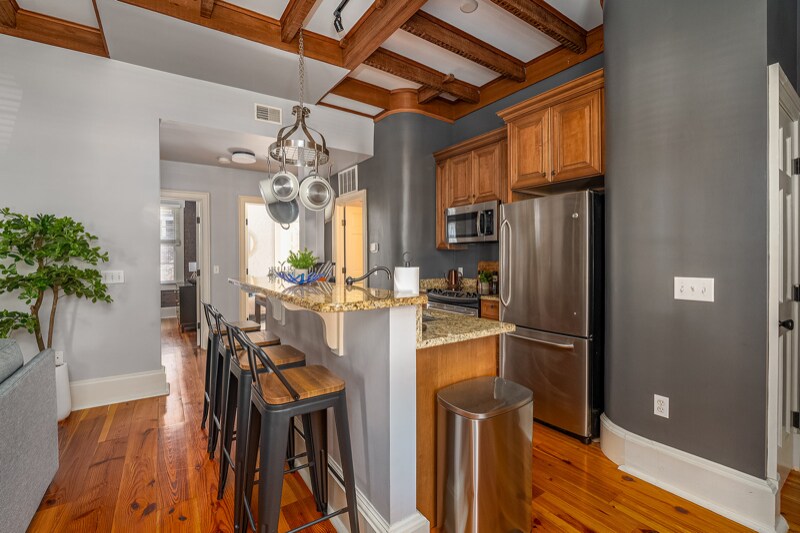 Property Id: 1627727 Welcome to Habersham Haven a furnished luxury condo in Savannah's most desirable Historic District! This condo is the perfect combination of historic and modern, blending old world charm and modern high end finishes. We can't wait to host you in this charming two bedroom, two bathroom first floor condo. Enjoy an updated kitchen and spacious open living floorpan, featuring two fireplaces, exposed ceiling beams and exposed brick walls. This condo boasts two master suites, one offering a comfy king bed, and the second a queen bed with office space. Enjoy in suite washer and dryer, wifi and smart TV, first floor access and included designated off street parking space. You will instantly feel a part of Savannah's history. Small dogs allowed upon approval and non refundable pet fee of $250. Deposit required. Condo availability pending confirmation on a minimum of 30 day stay. Monthly rates vary based on demand. Starting at $4500 per month