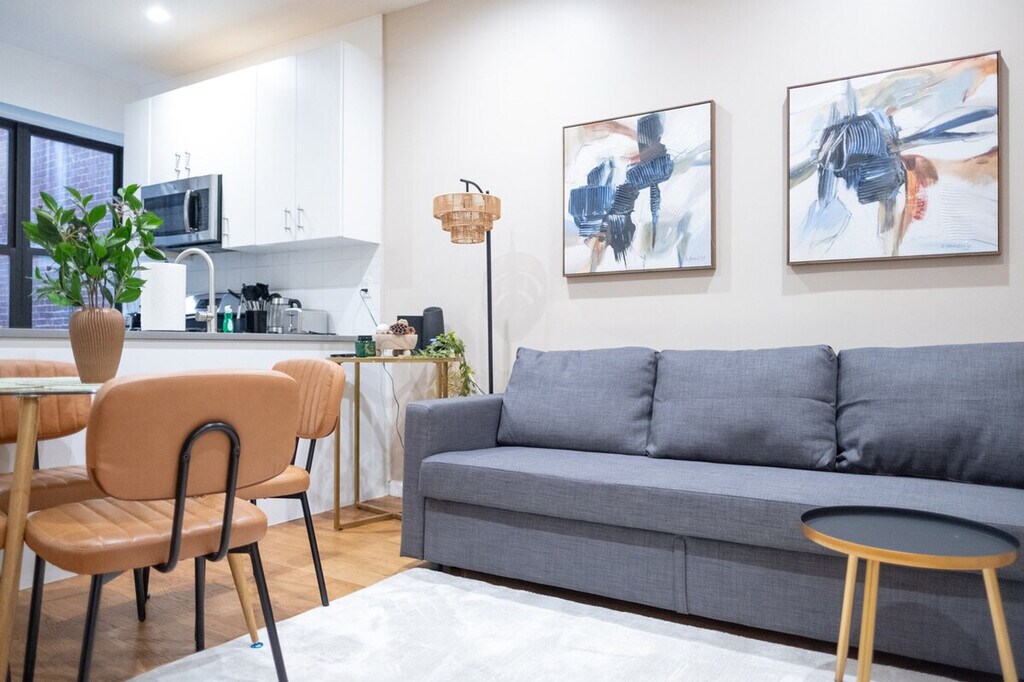 Feel at home in this spacious 3-bedroom apartment in Manhattan, offering everything you need for a comfortable and enjoyable long-term stay. The apartment features a fully equipped kitchen, a generous living space with a cozy couch and a 50-inch TV, and three comfortable bedrooms. The first bedroom has a queen-size bed, while the second and third bedrooms each have full-size beds. The apartment boasts a fully equipped kitchen with a large refrigerator, stove top, oven, coffee maker, Keurig machine, toaster, microwave, and dishwasher, along with all necessary utensils and cutlery. The living room provides ample space to unwind, featuring a dining area and entertainment options. Each bedroom is designed for comfort, complete with plush bedding, desks, mirrors, closets, hair dryers, AC, and ceiling fans. Additional amenities include extra storage space, natural light, and a vacuum cleaner. Bed linen, towels, and an iron are provided for your convenience. Street parking is available and free of charge. Be mindful of alternate side parking regulations, which vary by street and day of the week. Conveniently situated just two blocks from both Central Park and Morningside Park, this apartment offers easy access to the natural beauty and recreational opportunities of these iconic green spaces. A leisurely 15-minute stroll will lead you to the historic campus of Columbia University. Navigating the city is easy with multiple subway lines nearby, including the Cathedral Parkway subway station (A, B, C lines) and Central Park North (110 St) subway station (2, 3 lines), offering seamless connections to all corners of New York City. Street parking is available and free of charge, with alternate side parking regulations to be mindful of. Smoking inside or outside of the apartment will result in a fine of $500. Pets are not allowed. Luggage storage is not available, so please use external services for luggage storage before check-in or after check-out. Quiet hours are from 10 pm to 7 am. Check-out time is at 11:00 AM, and guests are responsible for leaving the apartment in good condition. All dishes should be placed in the kitchen sink, and all trash in the trashcans. Excessive cleaning charges may apply at the owner's discretion. The apartment includes Wi-Fi and cable/satellite TV, ensuring you stay connected and entertained. All utilities, including heat, hot water, and gas/electricity, are included in your stay. Kindly note that a $350 refundable security deposit is required and will be collected directly by the partner after your booking is confirmed. The security deposit will be handled through direct communication with the partner and is not processed automatically. [SI]