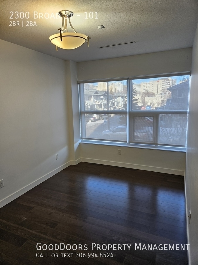 HEATED UNDERGROUND PARKING 2 Bedroom Condo in Downtown Regina – Available Immediately Key Details: $1,650 per month, 2 Bedrooms, 2 Bathrooms, 1 Heated Underground Parking Stall + Street Parking Available, One small pet under 40 lbs accepted GoodDoors Benefits: - 24/7/365 Maintenance Hotline - Credit Building (Equifax) - Online Resident Portal - HVAC Filter Delivery - Customizable Tenant Insurance - Flexible Rent Payment Options - Security Deposit Waiver Program Property Description: Experience luxury, maintenance-free condo living in the heart of Downtown Regina at Centre Square. This spacious 2-bedroom, 2-bathroom condo offers comfort, convenience, and secure underground heated parking — perfect for Saskatchewan winters. The unit is unfurnished and move-in ready, previously long-term rented and well-maintained. Enjoy a functional layout ideal for professionals or small households seeking modern condo living with minimal upkeep. Located in one of the city's most desirable areas, this condo places you steps from upscale dining and shopping downtown, while being just moments from the serene paths and parks of Wascana Lake, legislative buildings and shops on 13th Avenue. Amenities: - Heated underground parking - Secure building access - Rooftop lounge - Fitness centre - Maintenance-free condo living Availability: Available immediately for a 12-month lease Take Action: Don't miss out on this fantastic opportunity. Book a viewing or apply today at .