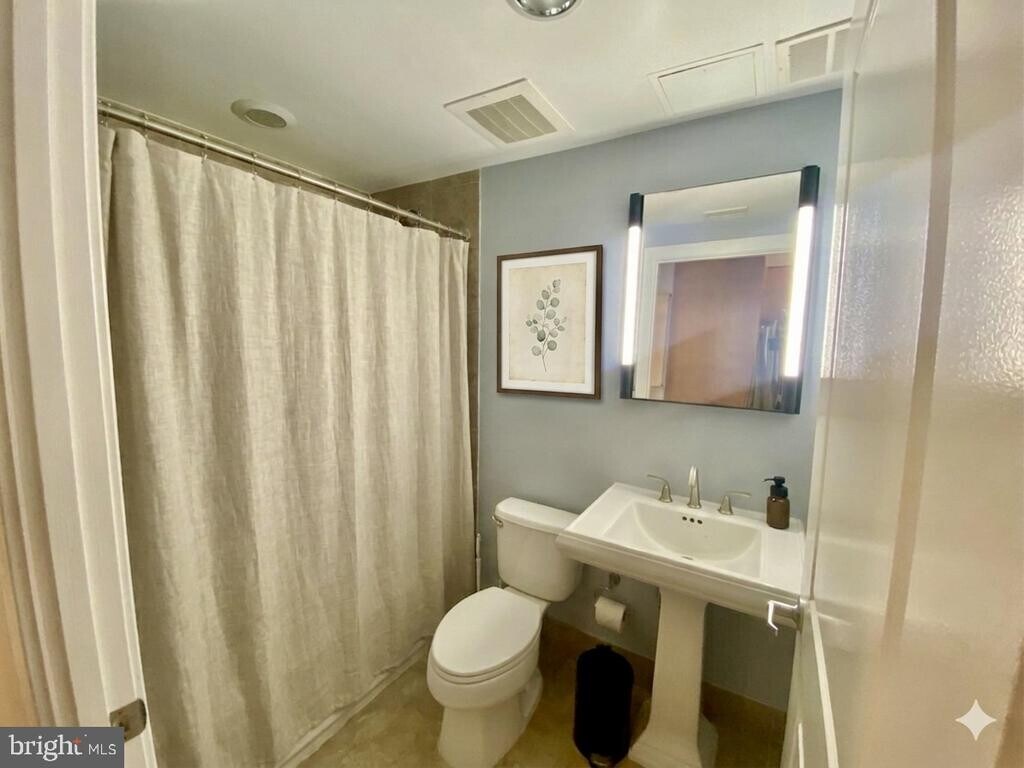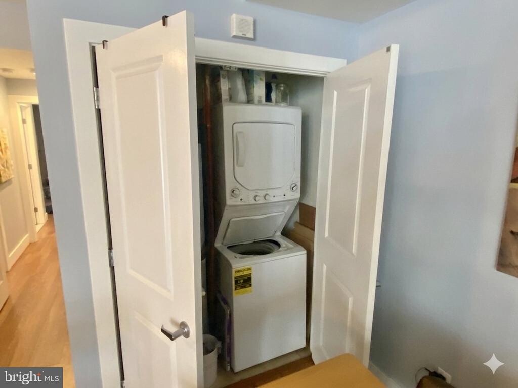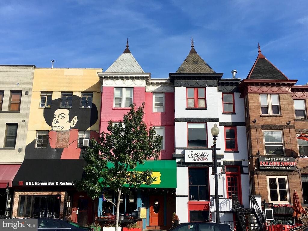 AVAILABLE JUNE 1ST. Contemporary 2 bed/2 bath condo at Adams Row in Adams Morgan w/assigned parking and outdoor space. The 840 sq ft condo features a separate terrace-level entrance, open floor plan, large living room area, separate dining space, modern kitchen (with granite countertops, stainless steel appliances, gas cooking & microwave), in-unit washer/dryer, central A/C, hardwood floors, high ceilings, large windows and plenty of storage. One bedroom is large enough for a king-size bed and offers a walk-in closet, while the smaller bedroom (with closet, door and windows) is a flexible space that can be used as a bedroom, guest room, den or office. Two full-size bathrooms feature tub/showers, tiled floors and mirrored/illuminated medicine cabinets. The No-Smoking building is steps to Harris Teeter, The Line Hotel, Adams Morgan dining, and close to three Metro stops, multiple bus stops, multiple Capital Bikeshare stations, Meridian Hill Park and Rock Creek Park. Walk Score: 98. The building is wired for Comcast and Starry Internet. Recent building improvement includes: 3 new state-of-the-art industrial water heaters; Amazon locker and secure lockboxes for packages; and new Kastle building-wide security system. Rent includes gas, water, sewer and trash. Tenant pays Pepco/electric and cable/WiFi. NO PETS. NOTE: Photos have been staged using Gemini AI.