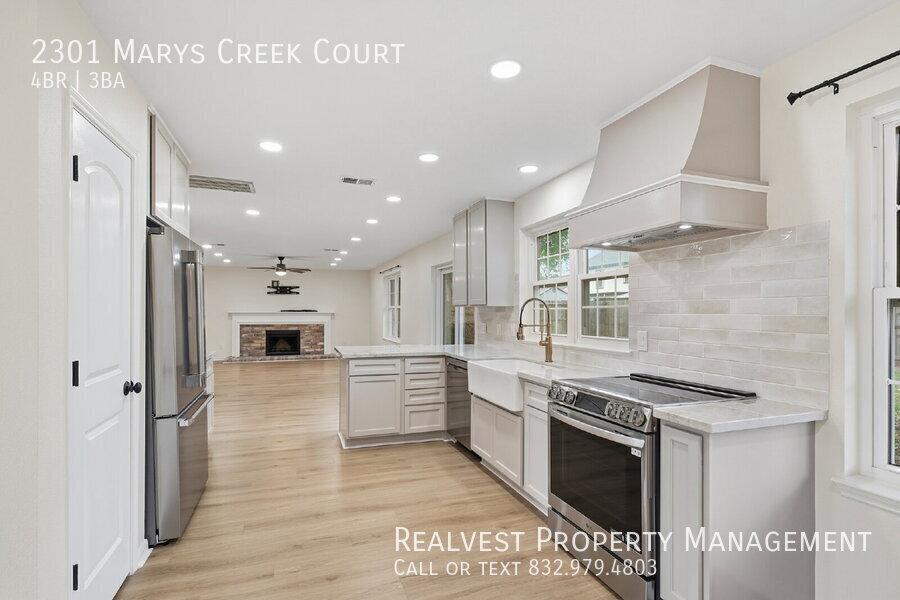 Step into this 4 bedroom, 2.5 bath home in the heart of Pearland. This move-in ready home offers an inviting layout featuring modern finishes throughout, a farmhouse apron sink, Quartzite Taj Mahal countertops, champagne bronze fixtures and stainless steel appliances along with a spacious pantry offering plenty of storage. The living area provides an open concept- perfect for family gatherings and everyday living. Bedrooms offer recessed lighting, ceiling fans, and luxury vinyl flooring adding extra comfort, while the primary suite serves as a serene retreat. This home offers the perfect blend of comfort and beauty. Every detail has been thoughtfully updated. Located on a corner lot, cul-de-sac, well-established community the home truly offers it all. Homes like these are rare, schedule your showing today!Vinyl