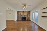 Located near Texas Christian University, the Cultural District. and downtown Fort Worth, you will enjoy wonderful dining and entertainment, in addition to easy access to major commuter routes. This stylish lease opportunity is ideal for those seeking a modern Fort Worth rental with elevated design, outdoor living, and true city convenience. Easy walking distance to TCU promises all the sports and cultural events that a great university offers. This contemporary duplex offers a rare blend of privacy, style, and an enviable location. Designed for an effortless lock-and-leave lifestyle, this 2 bedroom, 2 full bathrooms upstairs, and 1 half bath downstairs features light-filled living spaces, hardwood flooring, and thoughtfully curated updates throughout the home. Closet and storage space is plentiful, a welcome surprise. The main living area offers a fireplace and opens to an intimate patio area, suitable for coffee or cocktails for a smaller gathering. Just three steps up find a deck above the 2-car carport, plenty of room for a larger crowd. From here, enjoy skyline views of downtown Fort Worth and Dickies Arena. The owner provides an awning to provide a comfortable outdoor living experience. The updated kitchen showcases granite countertops, subway tile backsplash, and appliances, including stove, refrigerator, and washer dryer. Both bedrooms are upstairs, each with its own full bathroom. One bedroom has its own fireplace. The other bedroom's designer touch, barn door closure to the master bath, adds interest. And another door to an outside area –- a secluded and very private area to be used as a patio, planting area for those with a green thumb, or potential dog run, choices that enhance your access to fresh air.
