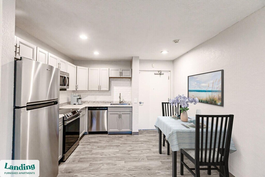 Landing offers flexible lease terms from weeks to months. Please always visit our website or contact us for the latest pricing & availability. Stay longer, save more: 6-Month Minimum base rent: starts at $2075/mo 12-Month Minimum base rent: starts at $1737/mo Landing offers flexible leases across a network of over 35,000 fully-furnished apartments throughout 375+ cities so you can rent on your terms, practically anywhere, and avoid the hassle of paying deposits or application fees. Visit to learn about all the benefits of a Landing membership, see our competitive up-to-date pricing, explore available apartments, take virtual tours, and make reservations online without jumping through traditional rental hoops. Landing's apartments at Sage Grove on Aaron are designed for comfortable, easy living, with the ability to stay as long as you like. Experience living with Landing Every apartment is outfitted with all the modern essentials including: custom-designed furnishings, a fully-equipped kitchen with deluxe stainless steel appliances, a gourmet coffee maker, premium linens, Smart TVs, and incredibly fast, reliable internet for working from home. When you live with Landing, you'll enjoy a hassle-free experience with the added benefit of 24/7 access to our dedicated member experience team. Some of the nitty-gritty: a background check and proof of income are required; we're completely smoke-free; bundled utility packages and pricing vary based on length of stay; pet-friendly options available; listed price reflects a 12-month minimum stay.