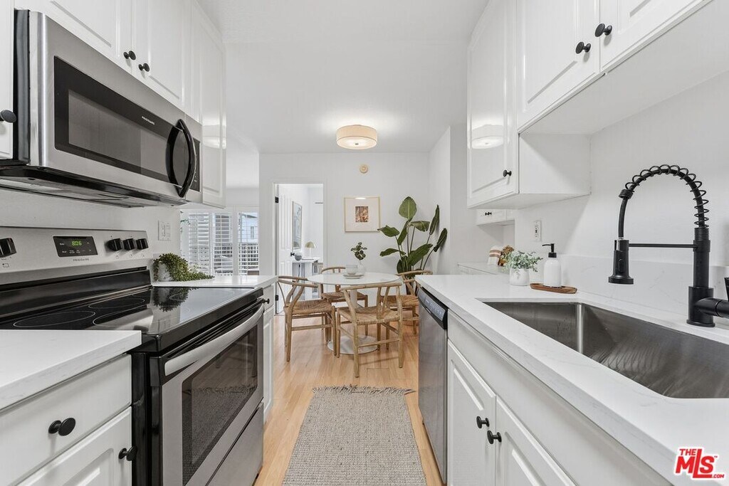 No pets allowed. Perched in a prime Santa Monica location, this top-floor corner condo is the epitome of modern convenience and coastal charm. Boasting 2 bedrooms thoughtfully placed on opposite sides for added privacy, this home offers a smart layout complemented by stylish updates. Step into the spacious living area, where sleek laminate floors flow seamlessly into an updated kitchen featuring brand-new quartz countertops, stainless steel appliances, and ample storage. Both bedrooms provide cozy retreats, with brand-new carpeting, while the primary bathroom shines with fresh quartz counters. Soaked in warm southern light, the condo's living spaces feel bright and inviting all day long. Enjoy your morning coffee or unwind at sunset on the quaint balcony. Additional highlights include an in-unit washer/dryer, two tandem parking spaces, and unbeatable proximity to Santa Monica's best. Whether you're grabbing a bite or drink at renowned local spots like Good Boy Bob or Santa Monica Brew Works, taking a stroll to the nearby shops and coffee houses, or hopping on the Expo Line for an effortless commute, this location truly has it all. Plus, it's just minutes from major hospitals and everything else that makes Santa Monica so vibrant. Don't miss the chance to call this light-filled gem home! MLS# 26670647