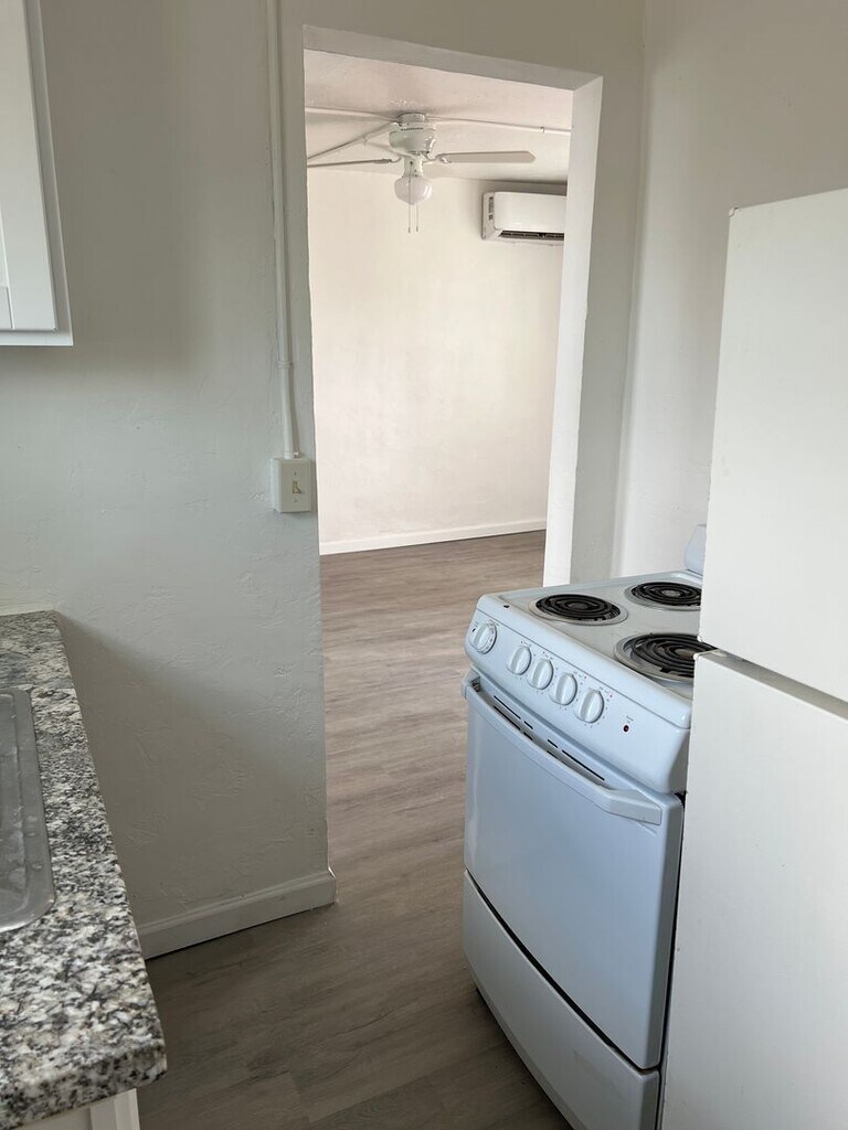 Small 5 unit community. 1 bedroom single level with wall AC unit and off- street parking. Gas stove.Pets welcome with petscreening profile and fees. Water billed at $50 per month. Tennat pays gas and electric driectly with utility company. Admin fee $150. By submitting your information on this page you consent to being contacted by the Property Manager and RentEngine via SMS, phone, or email.