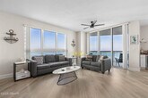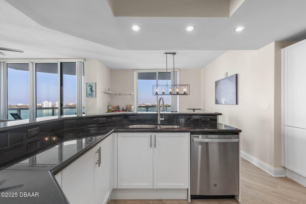 Two bedroom,two bath luxury condo with granite countertops,breakfast bar,stainless steel appliances,Italian cabinetry,large pantry,stacked washer/dryer in unit,large walk in closets,double sinks in the master bath,jetted tub and separate enclosed shower. SPECTACULAR VIEWS of the Halifax River,Atlantic Ocean and Daytona Beach from your private balcony with dual access points. Gorgeous resort style,24-hour guard gated community with over 10,000 SF of amenities including a movie theatre,party room,fitness center,yoga/Pilates/dance studio,billiards room,game room,library,Wi-Fi throughout,7 days concierge and two pools.