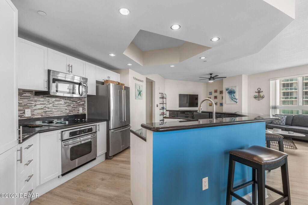 3-bedroom,3-bath FURNISHED condo with spectacular waterfront views of the Halifax River. Features granite countertops,stainless steel appliances,elegant cabinetry,and tile flooring. Enjoy the expansive balcony with dual access points,perfect for soaking in breathtaking sunrises and views of the Halifax River. Inside,find a spacious primary bedroom with an oversized window and a generous sized primary bathroom retreat with a jetted soaking tub and separate shower. Situated in a resort-style,24-hour guard-gated community with luxury amenities,including a private movie theater,banquet room,fitness center,yoga/Pilates/dance studio,billiards and game room,library,7-day concierge service. This is waterfront living at its finest! Call today to start living your luxury dream!
