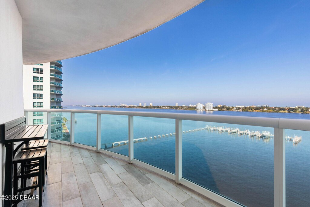 Available Nov 3rd. Spectacular views of the Halifax River and Intra-coastal Waterway from this 25th floor condo on an 18 acre waterfront community. Modern kitchen,granite counters,and stainless steel appliances. Lavish master suite features the master bath with beautiful tile floors,dual vanity sinks,ample counter space,free standing tiled shower and roman tub. Second bath features a tiled walk-in shower. Floor to ceiling patio doors. The community features a gated entrance with 24-7 security,covered parking,and concierge service. World class amenities include 2 Clubhouses,Fitness Center,Social Rooms,Billiards Room,Theatre Room,Steam Rooms,Saunas,Yoga Studio,32 Slip Marina,and Olympic and heated Infinity pools.