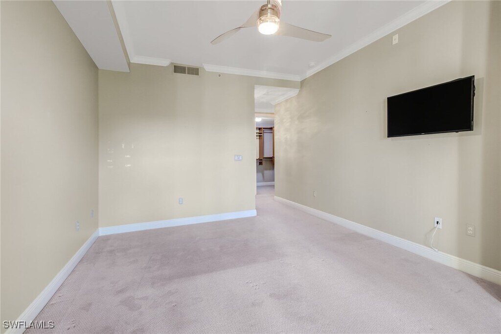 Beautiful light and bright rarely available FASHION DRIVE Two Bedroom Two Bath + Den UNFURNISHED ANNUAL rental. This property is by far one of the most desirable units in the entire community. Boasting 1480sqft,solid core 8'ft doors throughout,built-in walk-in closets,laundry room with storage space,dual vanity master bath with soaker tub,private parking and incredible western exposure sunsets views from your juliet balcony. This property is a must see being located right on the Fashion Dr strip. Coconut Point Mall is home to Estero and Bonita's finest dining and shopping options such as Ruth's Chris Steak House,Divieto Restaurante,Tommy Bahamas Marlin Bar,El Nido,SouthFork Grille,Cheesecake Factory,Starbucks,Super Target,and many more! High-speed Xfinity cable,Internet,HBO MAX Streaming,and water are all included. Tenant is responsible for electric only.