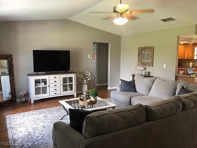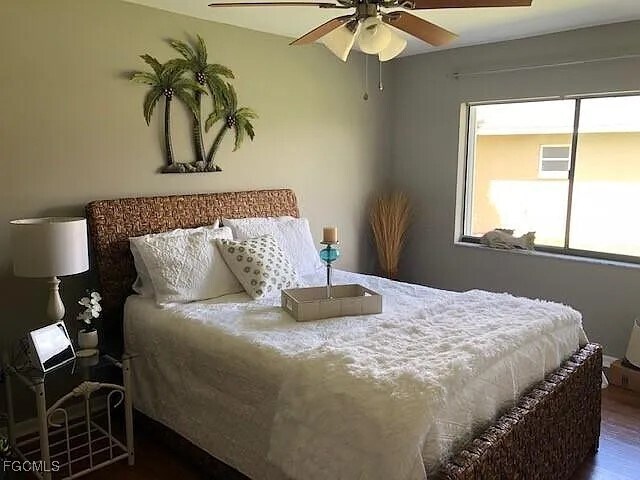 Available now,this beautifully maintained 3-bedroom,2-bathroom single-family home offers a serene lifestyle on a freshwater canal basin in Cape Coral. Step inside to find an airy interior featuring vaulted ceilings and durable wood laminate flooring throughout,with tile in the bathrooms. The smart layout includes a primary bedroom with an attached full bath,while a stylish barn door in the living room provides separation for a private guest suite. Outdoor enthusiasts will love the large,gorgeous fenced yard featuring a banana tree and direct access to the water—bring your kayaks,paddleboards,or boat! The home is equipped with central air,forced air heating,in-unit laundry,and a 2-car attached garage. Located in a quiet residential neighborhood near Veterans Blvd and Santa Barbara,you are within walking distance of Publix,Target,and Walgreens. Cats and dogs are welcome!