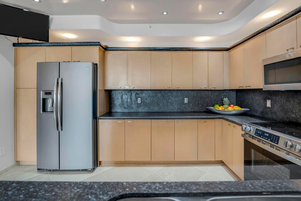 Located on the 3rd floor, overlooking the pool area, beautiful 3 bedroom, 2 bath unit.Large kitchen with granite countertops and stainless-steel appliances.1 covered parking space plus valet.