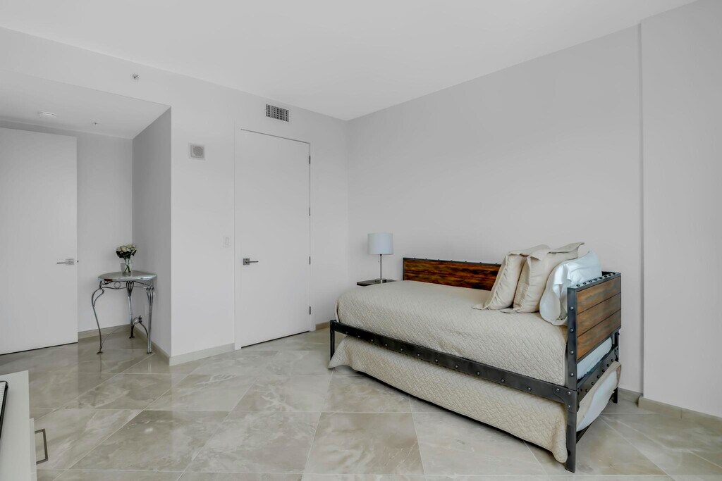 Elegant downtown Boca Raton seasonal rental, 2 bedroom, 2 bathroom condo located on the 5th floor of Boca Grand. Floor to ceiling sliding door accessing the covered balcony perfect for any breezy afternoon. The kitchen is nicely updated with granite countertops and newer appliances.2nd bedroom contains 2 twin beds & 2 bunks beds. The 2 bathrooms were remodeled.