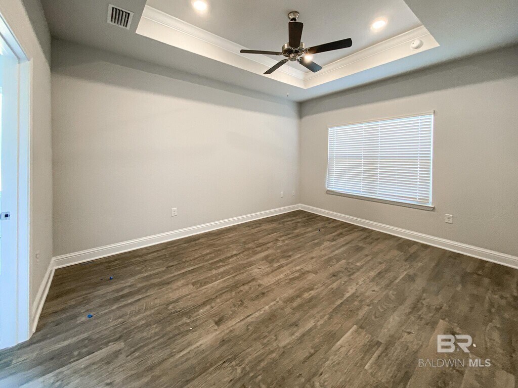 When you walk into this custom build 4BD/2BA home, you'll notice hardwood floors throughout a large living room. This open space features tray ceiling and a kitchen with granite countertops and all-new stainless-steel appliances. Please note, a refrigerator is NOT included. The master suite features a tray ceiling with an exquisite bathroom, complete with a large walk-in shower, a separate soaking tub, dual vanities, and a walk-in closet. The split floor plan allows for two guest bedrooms to be separate from the third bedroom, which doubles as an office area. There is a full-size laundry room with washer and dryer hookups. For additional privacy, a fully fenced backyard provides the perfect space for entertainment and play. This home is also within walking distance of the community's pool, tennis, and basketball courts. Tenant to pay all utilities. Property will be held off market up to 14 days with Property Holding Fee with approved app. Lease Prep Fee of $75 is due prior to move in. Approved pets require $400 pet fee per pet. Renters insurance is required.
