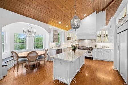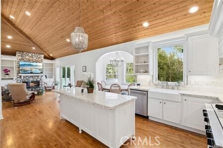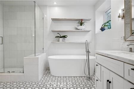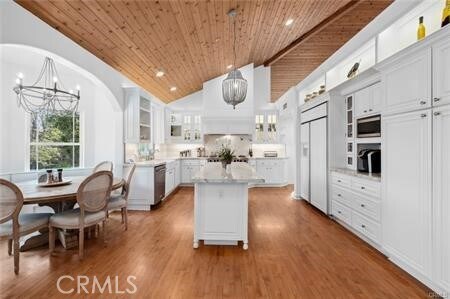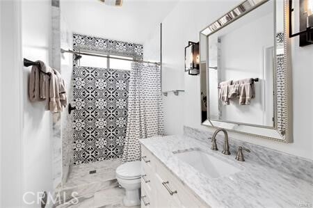- tunning craftsman-stye home in the Coto's highly sought-after neighborhood, The Village. This 5 bed + bonus room home boasts a bright and spacious floor plan. On the entry level, you will find wood floors with shiplap vaulted ceilings throughout. The kitchen features white cabinetry, large island, farmhouse sink, and Viking 6-burner gas range stove with double oven. The family room showcases a beautiful floor-to-ceiling custom rock fireplace. Just off the family room is a large patio overlooking the one of a kind backyard with serene views. Also on the main floor is a formal dining room with a 2-sided brick fireplace with custom shelving, a guest suite with shaker cabinetry built-ins, and an attached 3-car garage fully remodeled with epoxy flooring and luxury cabinetry. Downstairs you will find an expansive bonus room, two bedrooms connected by a remodeled jack and jill bath, an additional bedroom with a remodeled en-suite, a half bath, laundry room and a Master Suite. The remodeled master bathroom features quartzite countertops and shaker cabinetry, a standalone tub, and a marble shower with mosaic flooring. The backyard showcases a rare fenced-in turf lawn along with a Michael Phelps Momentum D Swim Pool and Spa. Surrounded by a tree-lined greenbelt with a creek that runs behind it, this truly custom home provides a sense of privacy and tranquility. The newly installed solar system will reduce electricity bills. Additional upgrades include new AC unit, chandeliers and light fixtures throughout, LED lighting and custom built-in cabinetry. Don't miss the opportunity to see what this beautiful home has to offer. Listing provided by: Christina Bowen of Re/Max Real Estate Group LA State License 1393488 Listing posted by Orange County [SYNDID 4136037 10222025]