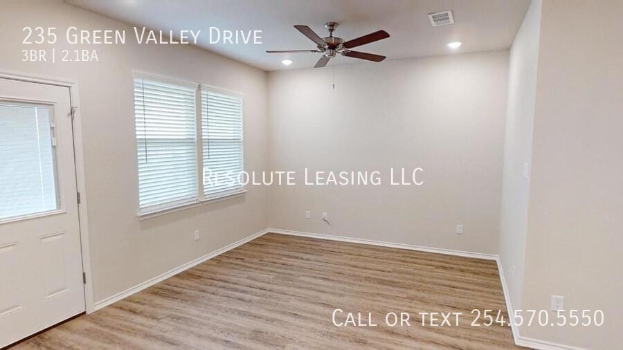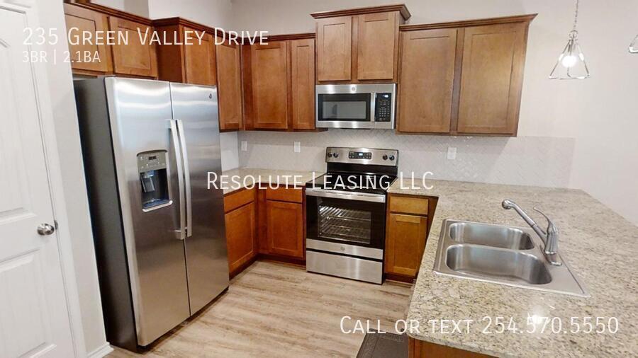 Welcome to 235 Green Valley Dr., Copperas Cove, TX—a delightful single-family condo in the heart of Coryell County, Central Texas! This 3-bedroom, 2-bathroom home offers 1,176 sq. ft. of well-designed living space in a newer neighborhood, making it an ideal place to call home. Step inside to discover a bright and inviting interior featuring vinyl plank flooring downstairs, providing both durability and style. The modern kitchen boasts granite countertops, ample storage, and all the functionality you need for cooking and entertaining. This home includes a washer and dryer upstairs adjacent to the bedrooms for added convenience. The home is thoughtfully designed for comfort and ease of living, with a layout that flows seamlessly from one room to the next. Outside, enjoy a cozy yard perfect for relaxing or hosting small gatherings. The property is situated in a newer neighborhood close to local schools, parks, shopping, and dining, offering a perfect blend of tranquility and accessibility. Don’t miss the chance to make this charming Copperas Cove home your own. Schedule a tour today and see all it has to offer! All Resolute Leasing residents are enrolled in the mandatory Resident Benefits Package (RBP) for $55.00/month which includes liability insurance, credit building to help boost the resident’s credit score with timely rent payments, up to $1M Identity Theft Protection, HVAC air filter delivery (for applicable properties), move-in concierge service making utility connection and home service setup a breeze during your move-in, our best-in-class resident rewards program, on-demand pest control, and much more! More details upon application.Vinyl Plank