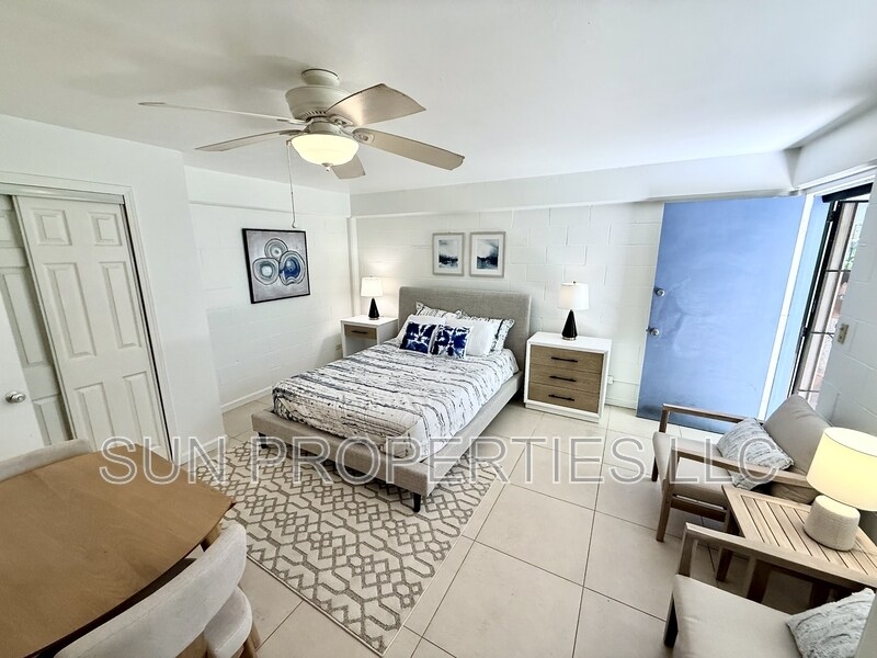 Available now - all new furnishings, inclusive of all utilities. For showings, please schedule online through our website. Great studio located in Waikiki, just 2 blocks from the beach and 1 block from a modern gym. It is situated in a well maintained Hawaiiana style building with nice gardens and a clean swimming pool. There is a resident manager on-site to oversee the maintenance and security of the building. There is community laundry on-site for your convenience. This unit comes fully furnished. Perfectly located and central, you can enjoy all that Waikiki has to offer. There is a bus stop less than one minute away. Parking is available 1 block away. Schedule a showing today! - NO PARKING, NO PETS, 6 MONTH MINIMUM- Contact Sun Properties LLC for all showings.