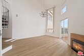 Penthouse by the Sea - 2 Bed + Loft - Ocean Views. Experience elevated coastal living in this refined penthouse residence, just one block from the sand in prime Venice. A rare corner unit, it offers 2 bedrooms, 2 bathrooms, plus a versatile loft ideal for a workspace or guest nook. Recently renovated with new luxury flooring, the home is filled with natural light and defined by soaring cathedral ceilings, floor-to-ceiling windows, and an effortless open layout. The living room features a sleek fireplace and opens to a private balcony with ocean views. The chef's kitchen is appointed with quartz countertops, soft-close cabinetry, stainless appliances, a convection oven, breakfast bar, and dedicated dining area. The serene primary suite includes a walk-in closet and spa-like bath with dual vanities and a jacuzzi tub. A second bedroom and full bath complete the main level. Upstairs, a private rooftop deck frames panoramic ocean vistas. This coastal sanctuary is complete with central HVAC. Residents enjoy resort-style amenities including a pool, spa, side-by-side parking, guest parking, and private storage. Moments from Abbot Kinney, Rose Ave, and Main Street, this penthouse blends luxury, style, and the best of Venice beach living. MLS# 25621823